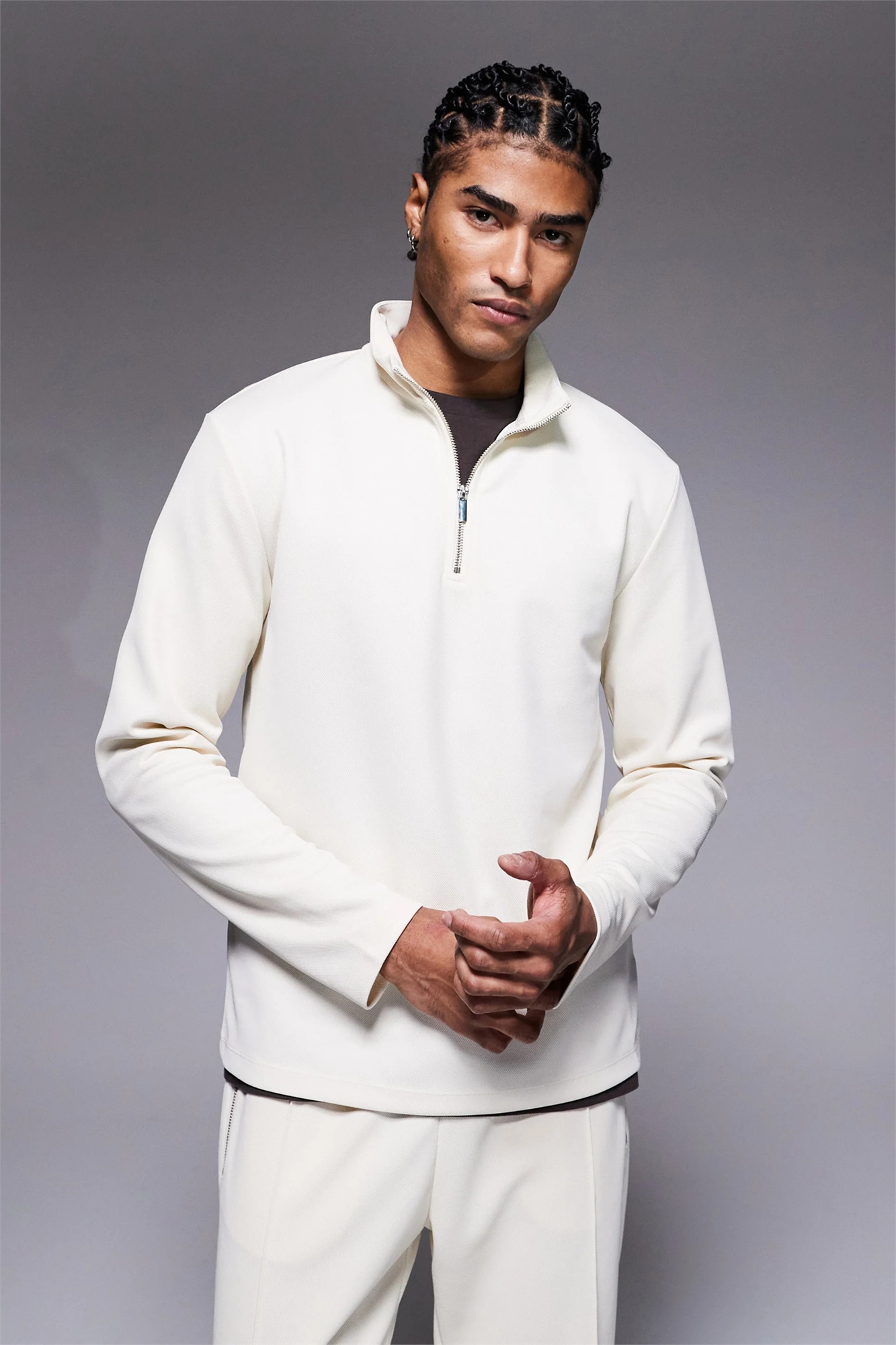 Топ с 1/4-й застежкой-молнией и фактурной отделкой премиум-класса co-ord