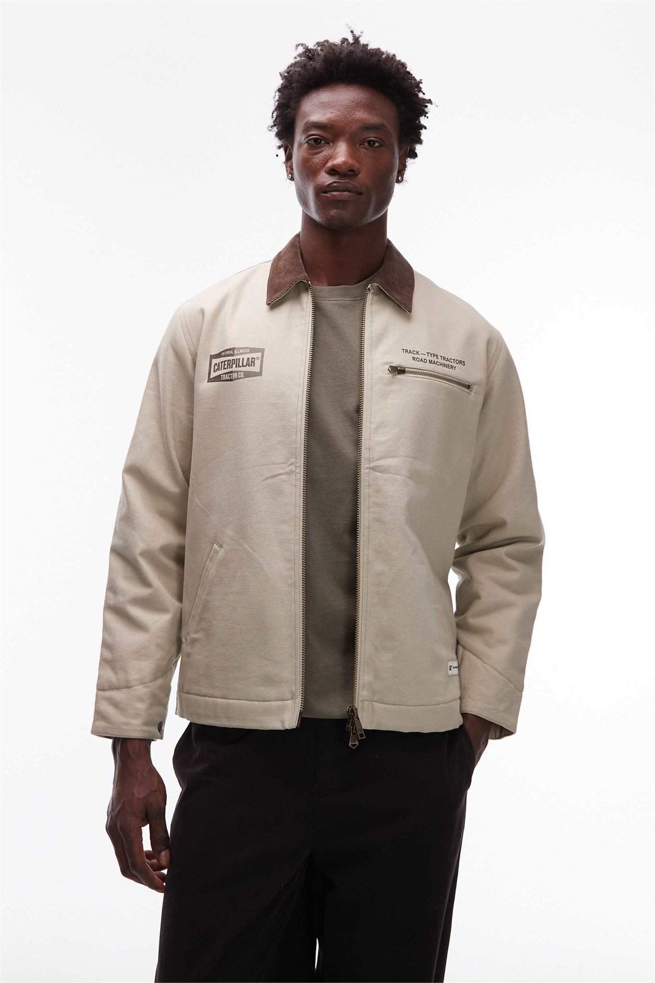 Двусторонняя куртка с логотипом на кремовом полотне с двусторонней застежкой-молнией