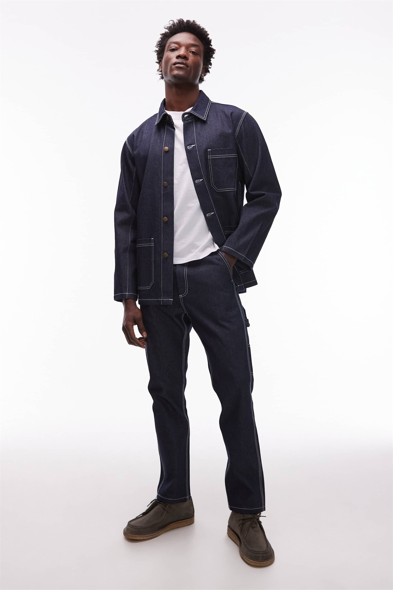 Джинсы-карпентер из денима прямого кроя с контрастной отстрочкой