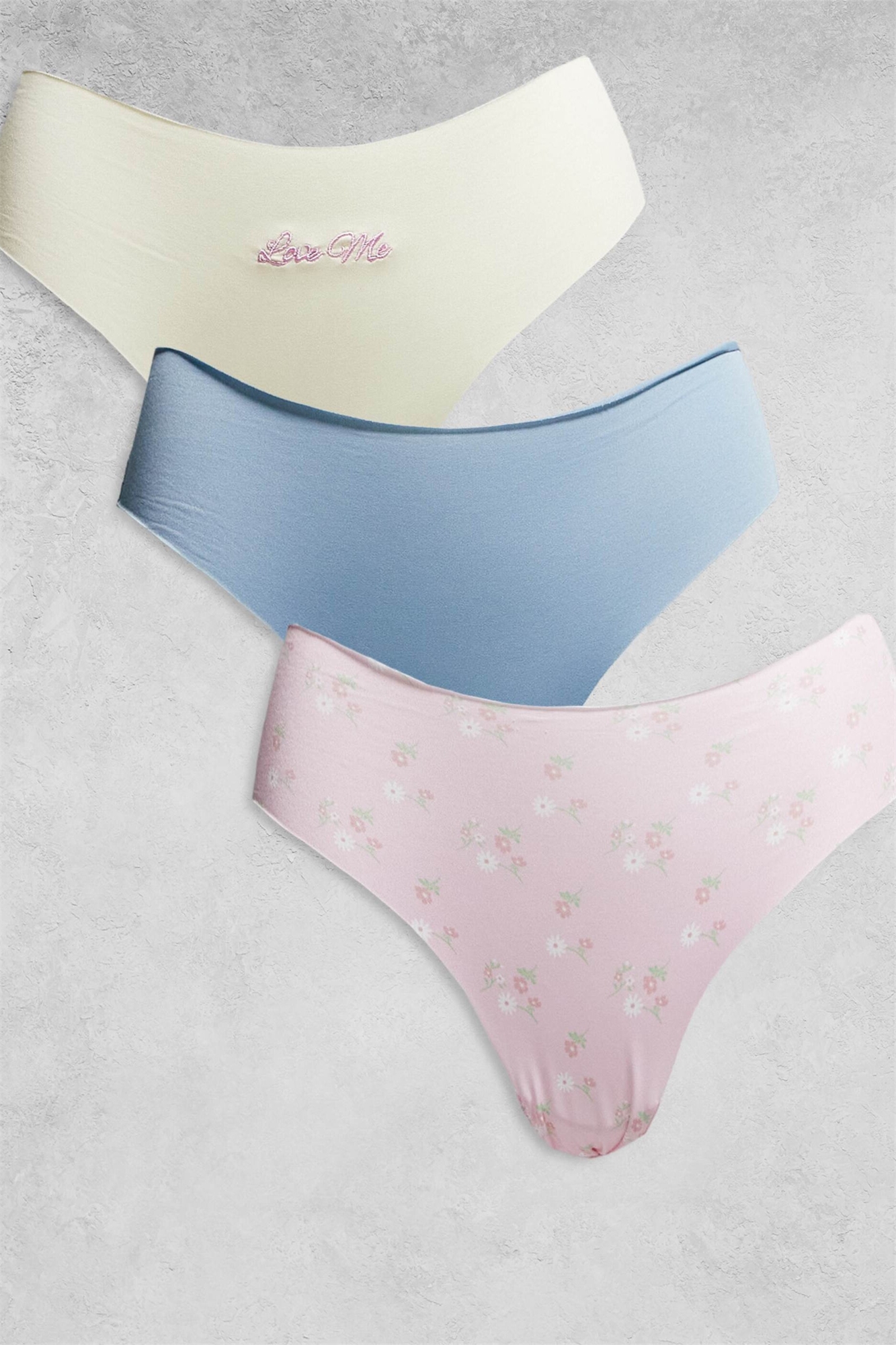 Набор из 3 штук: трусики «Love Me» без отпечатков и с кружевом, бразильский крой