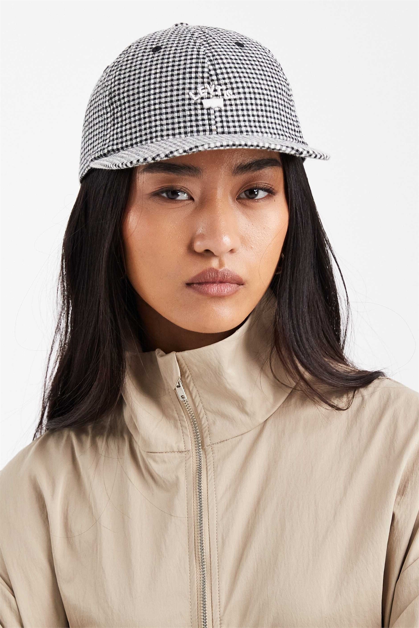 Кепка с логотипом из вымытого полотняного материала в клетку