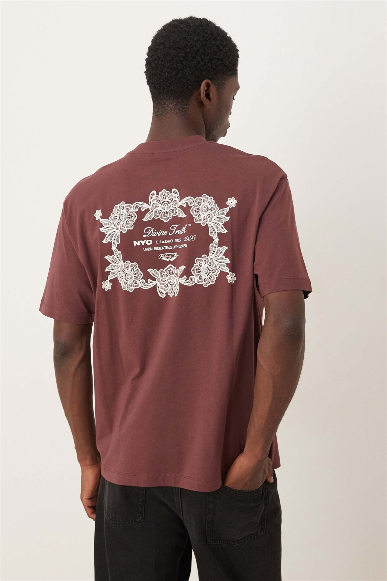 Футболка свободного кроя с принтом в виде цветочного эмблемы