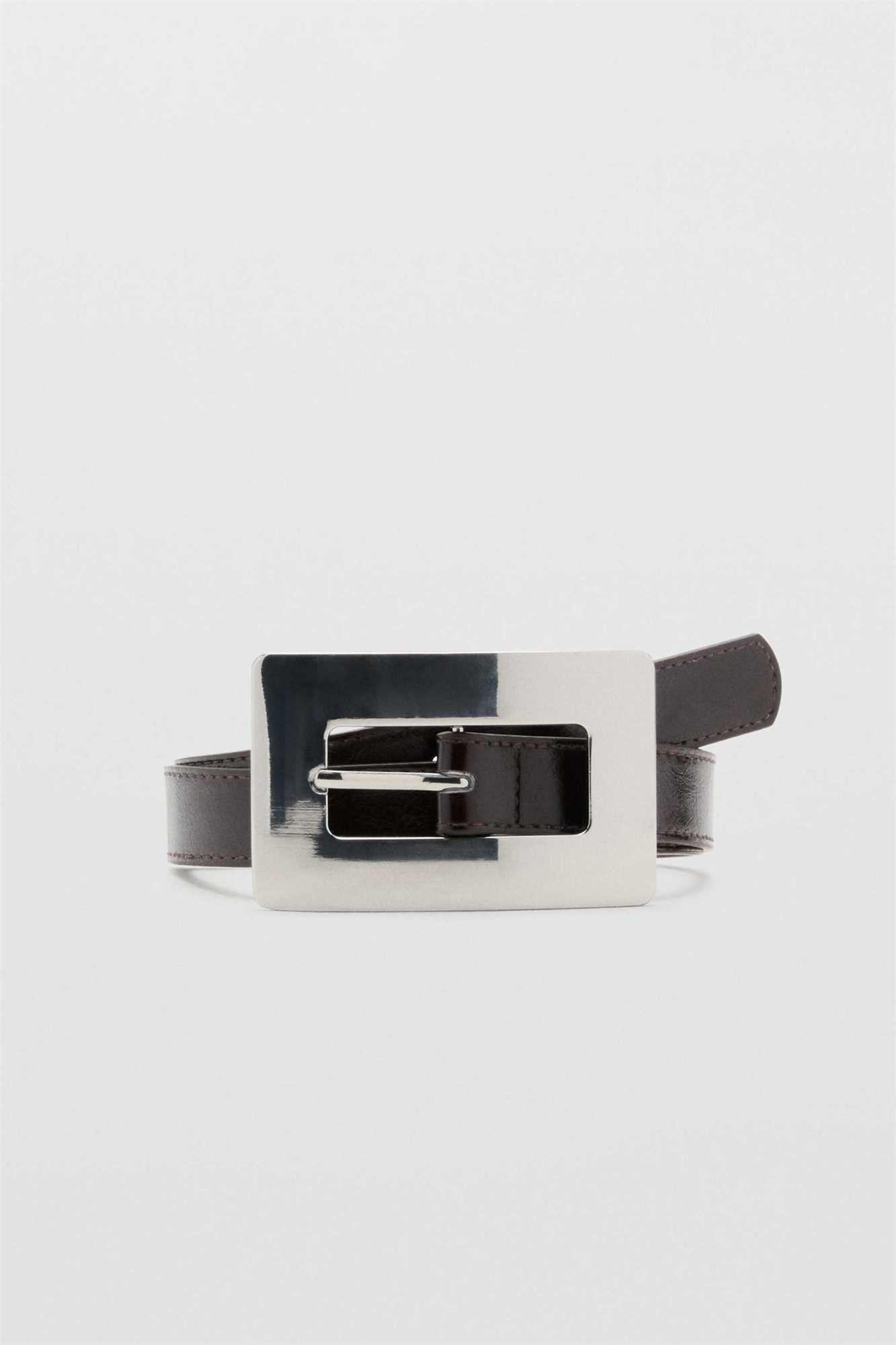 Пояс из искусственной кожи с большой прямоугольной серебряной пряжкой