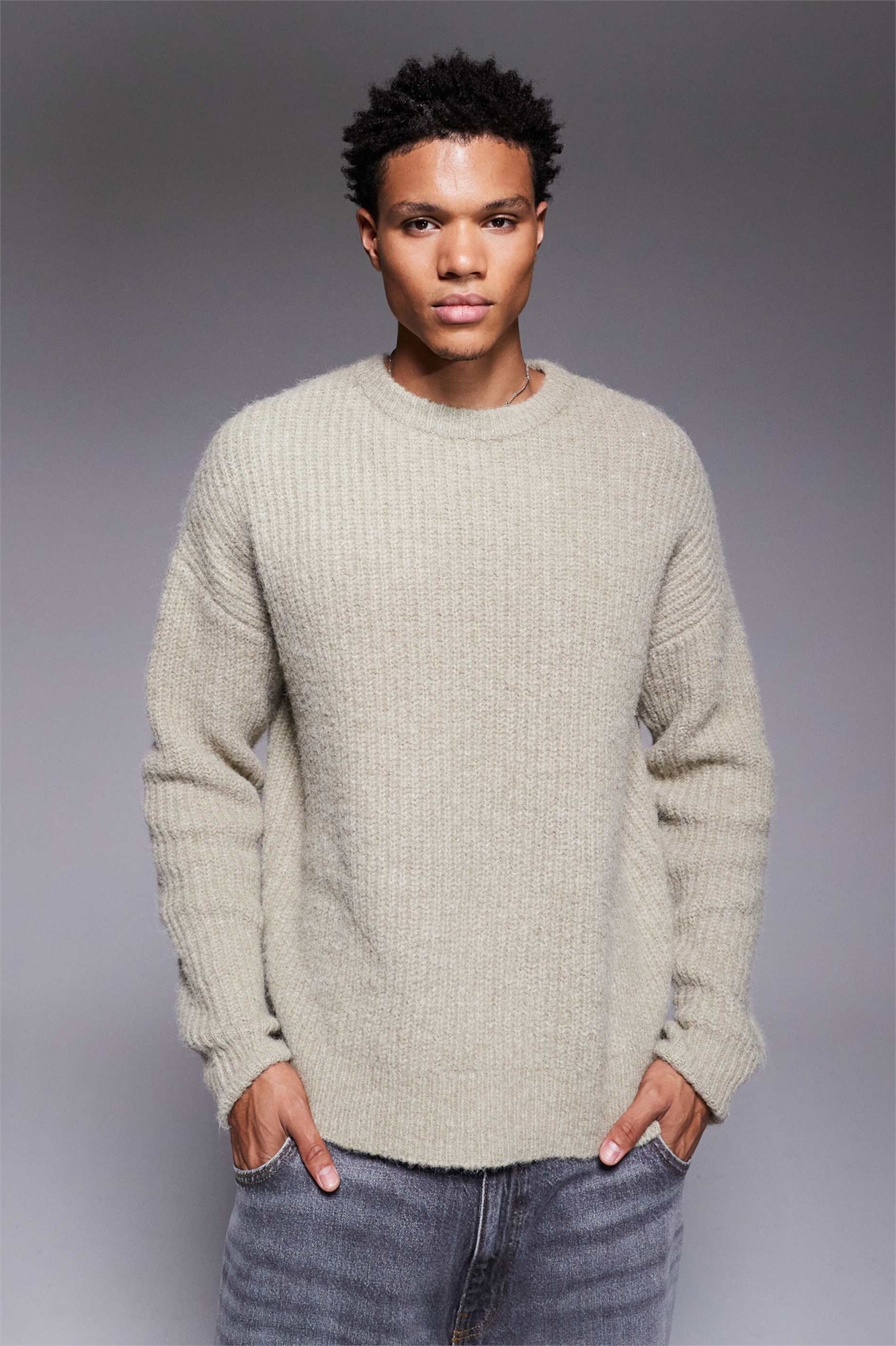 Свободный вязаный свитер с круглым вырезом