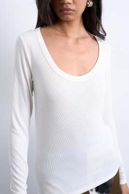 Топ с длинным рукавом и широким вырезом, из ткани премиум-класса