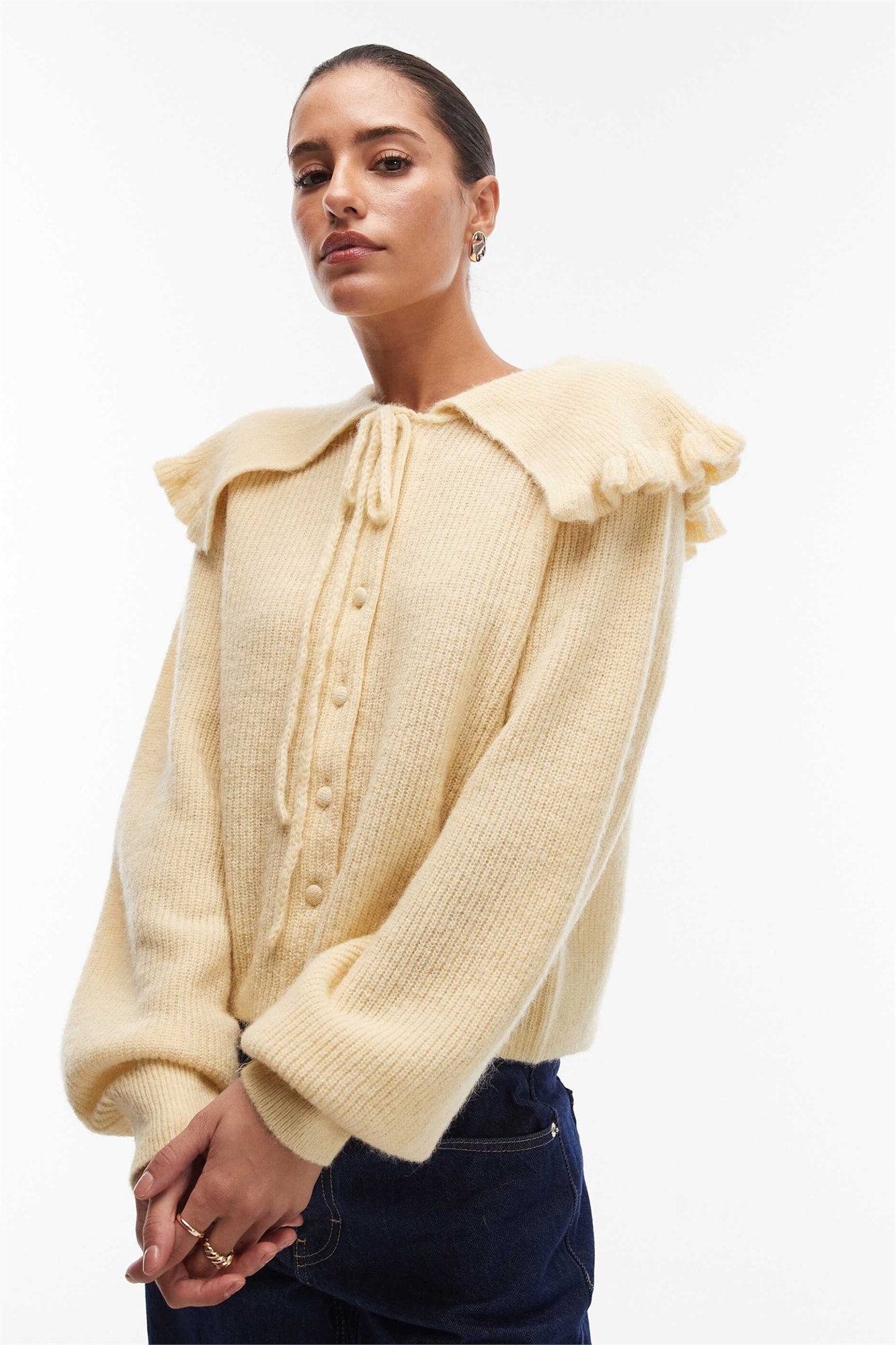 Кардиган из альпаки с большим воротником, завязывающимся спереди