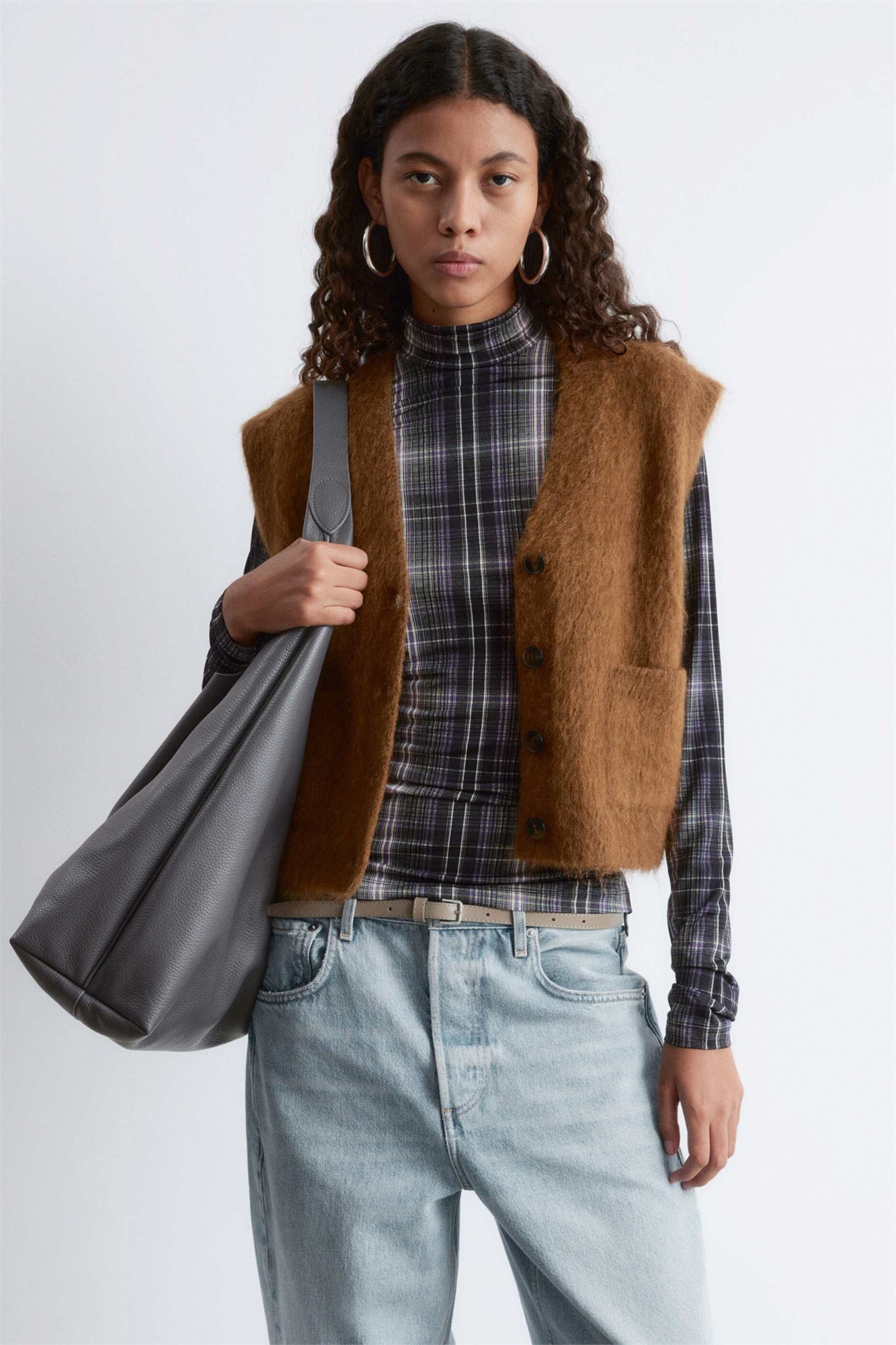 Жилет-майка из мохера и шерсти с ворсистой вязкой