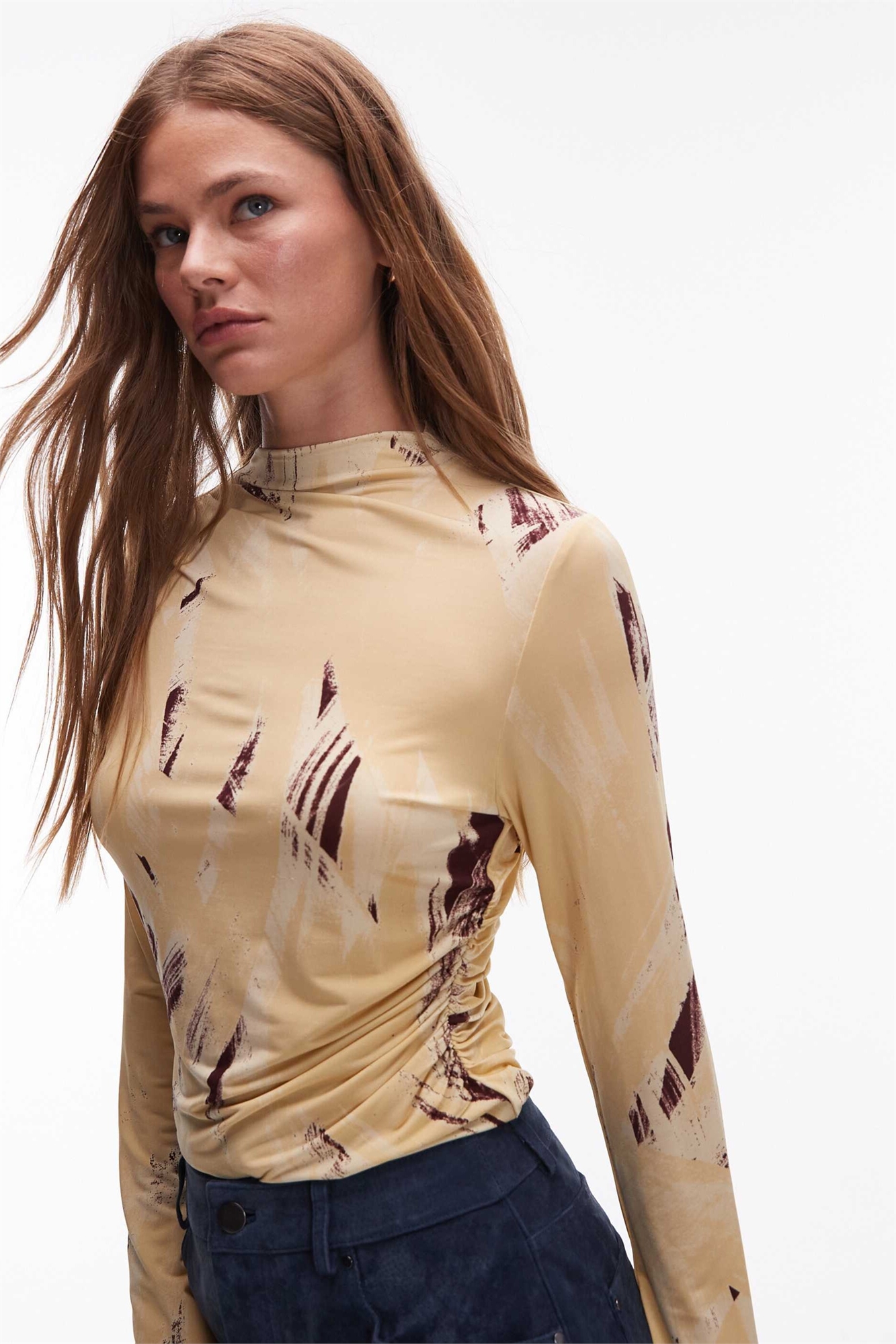 Топ из джерси с рюшами по бокам и длинными рукавами