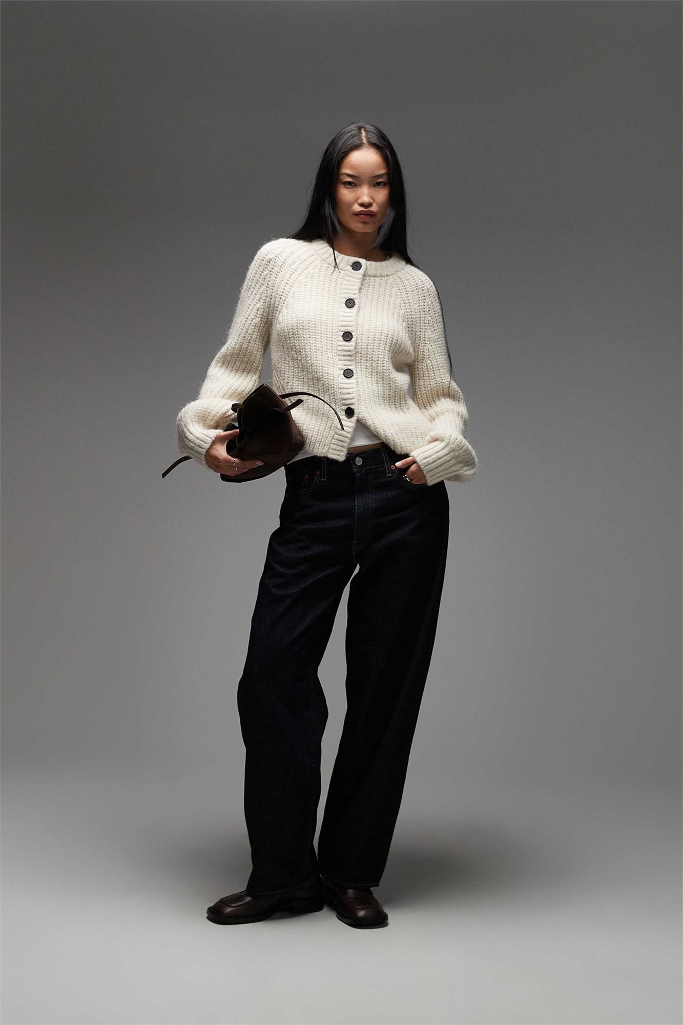Кардиган из альпаки и шерсти с крупной вязкой и рукавами-балонами