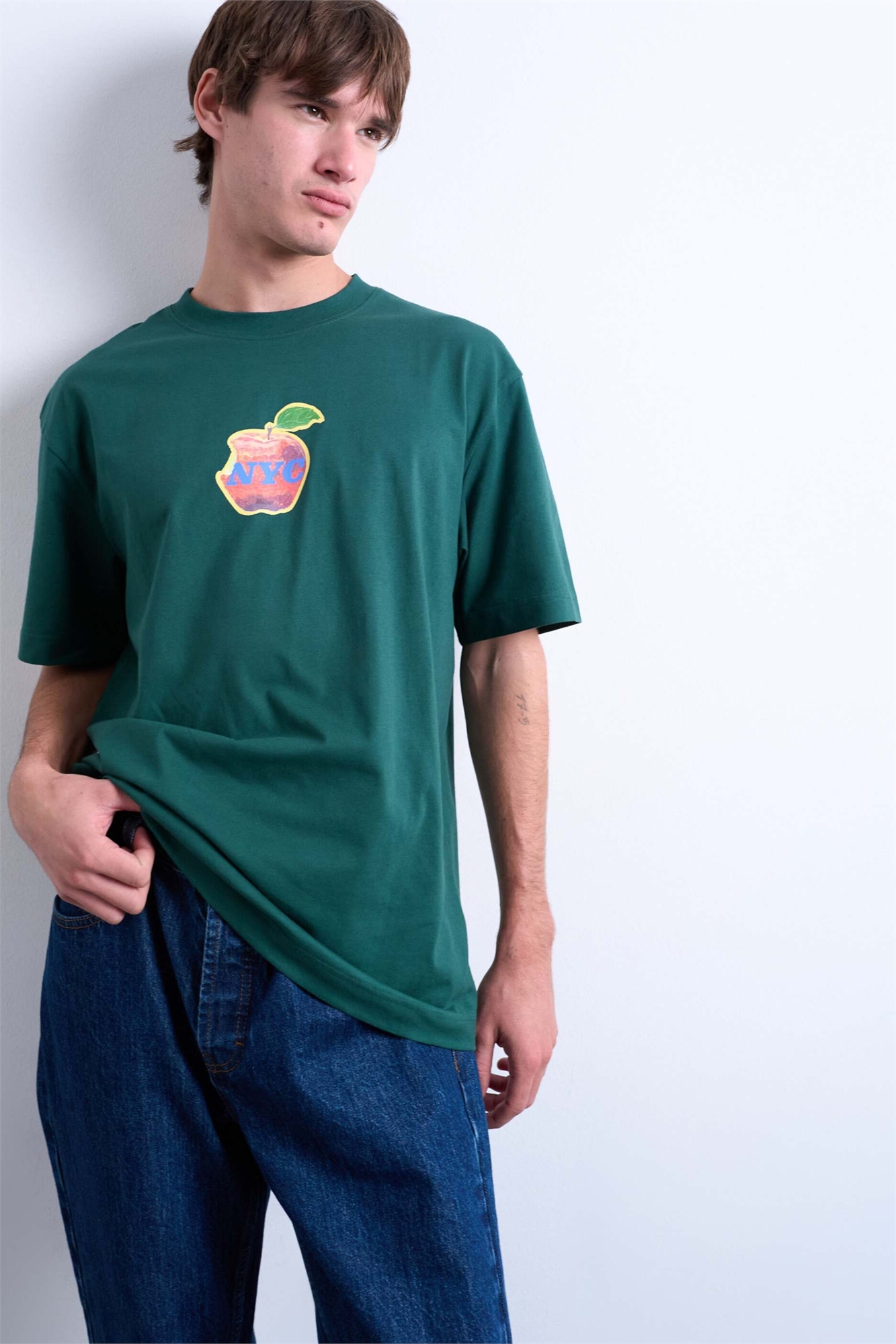 Футболка свободного кроя с принтом в виде яблок в стиле Нью-Йорка