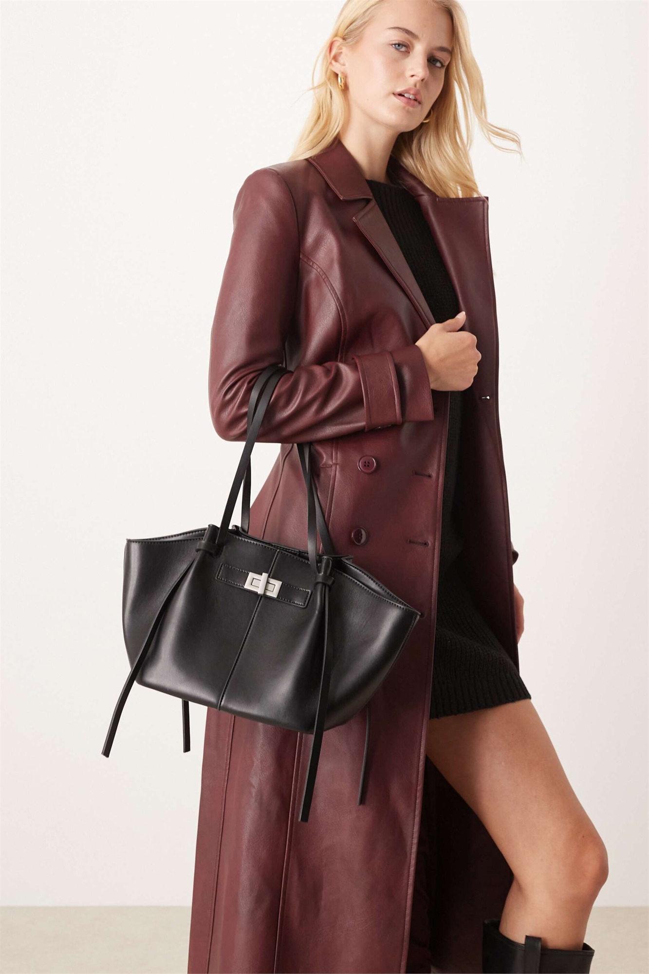 Небольшая сумка-тоут из искусственной кожи с ремешком и клатч с серебристыми элементами