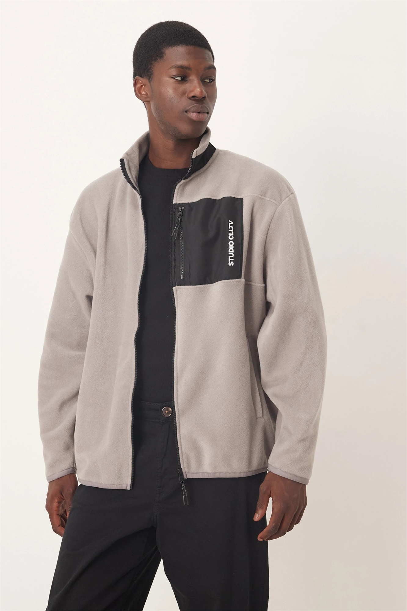 Свободная кофта из флиса на молнии с нейлоновым карманом