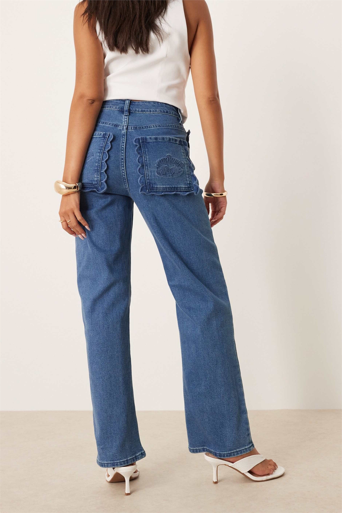 Джинсы из денима с высокой талией и вышивкой
