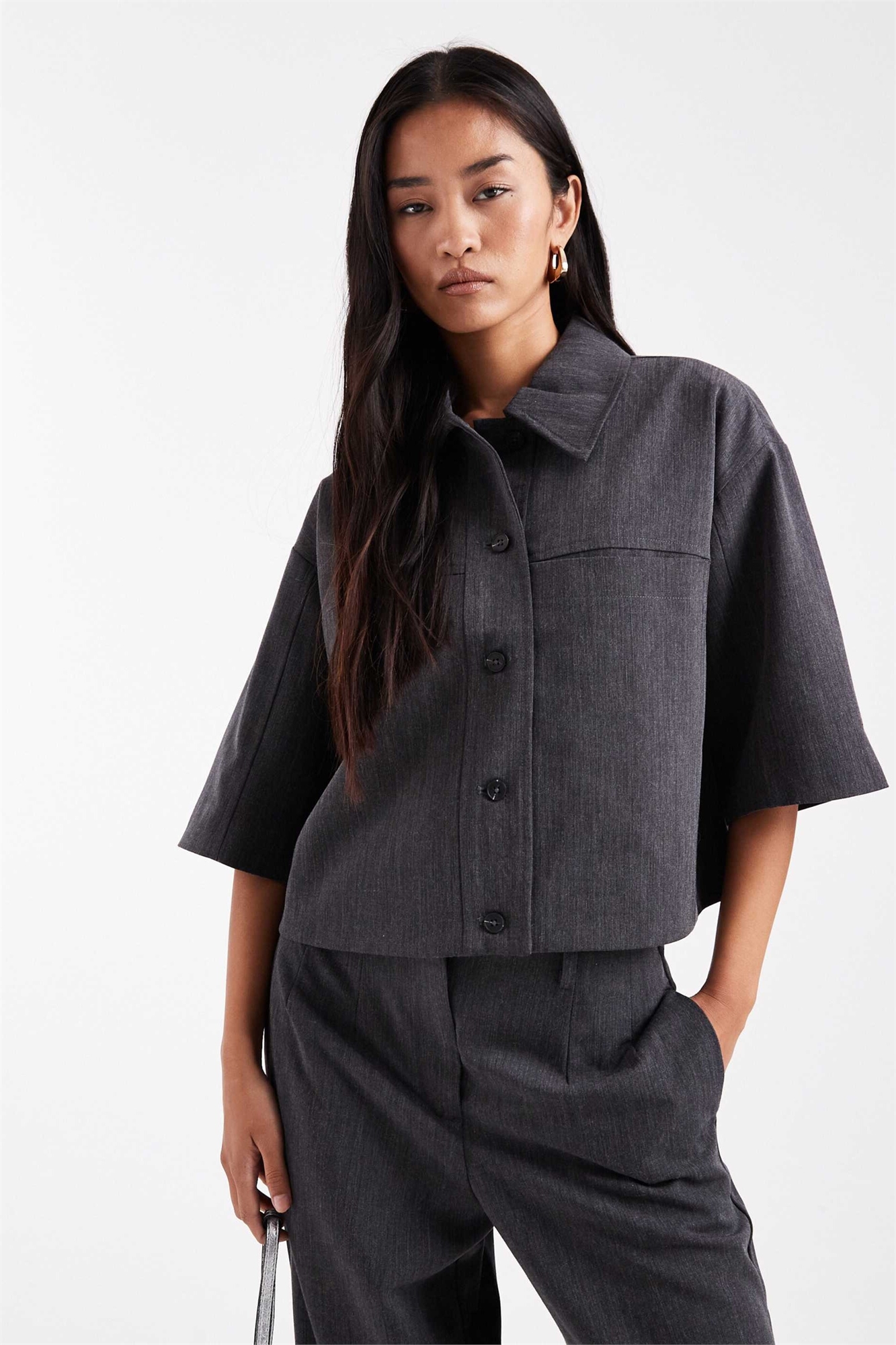 Блейзер в стиле укороченной рубашки с короткими рукавами co-ord