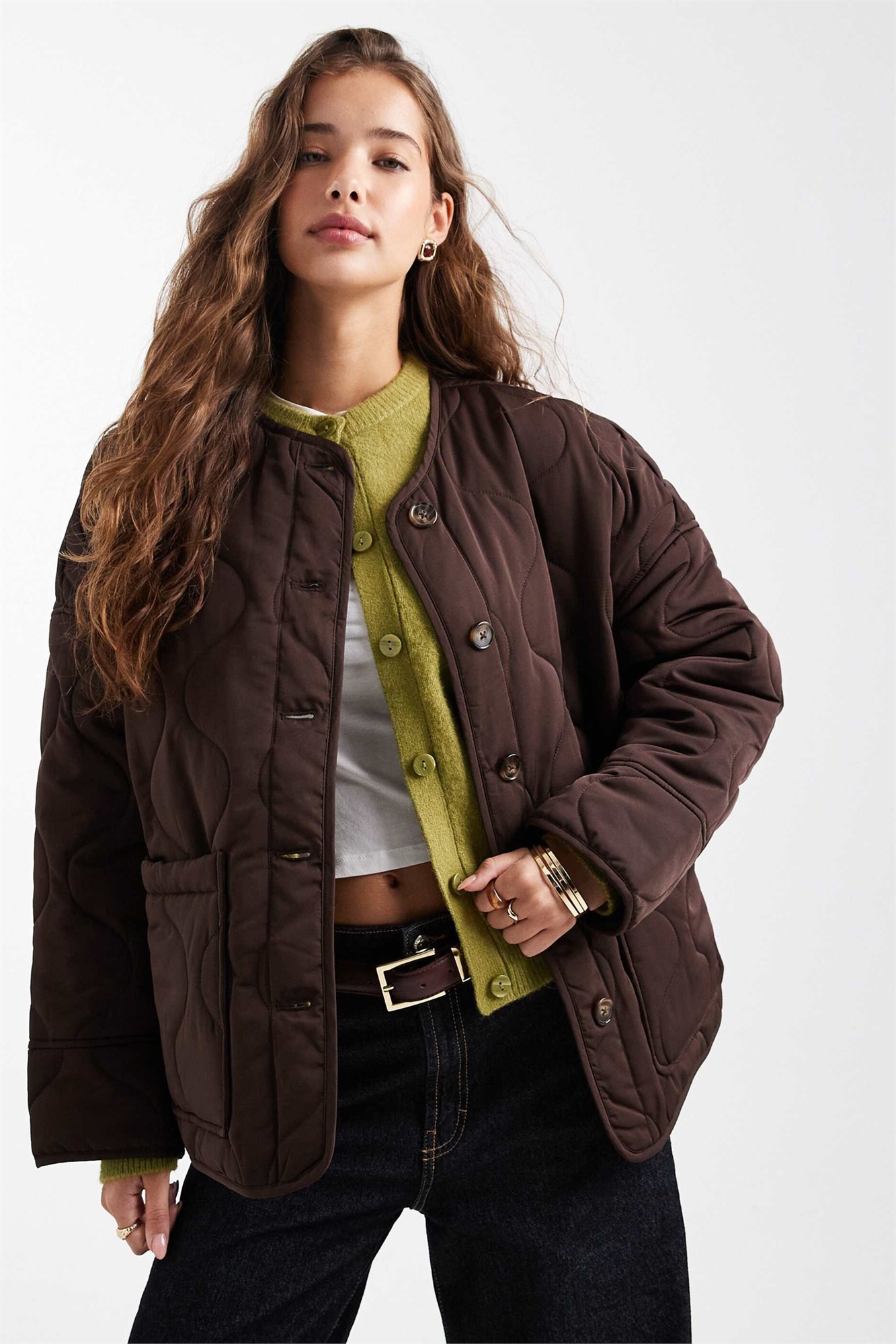 Бомбер с стеганым передним карманом цвета лука
