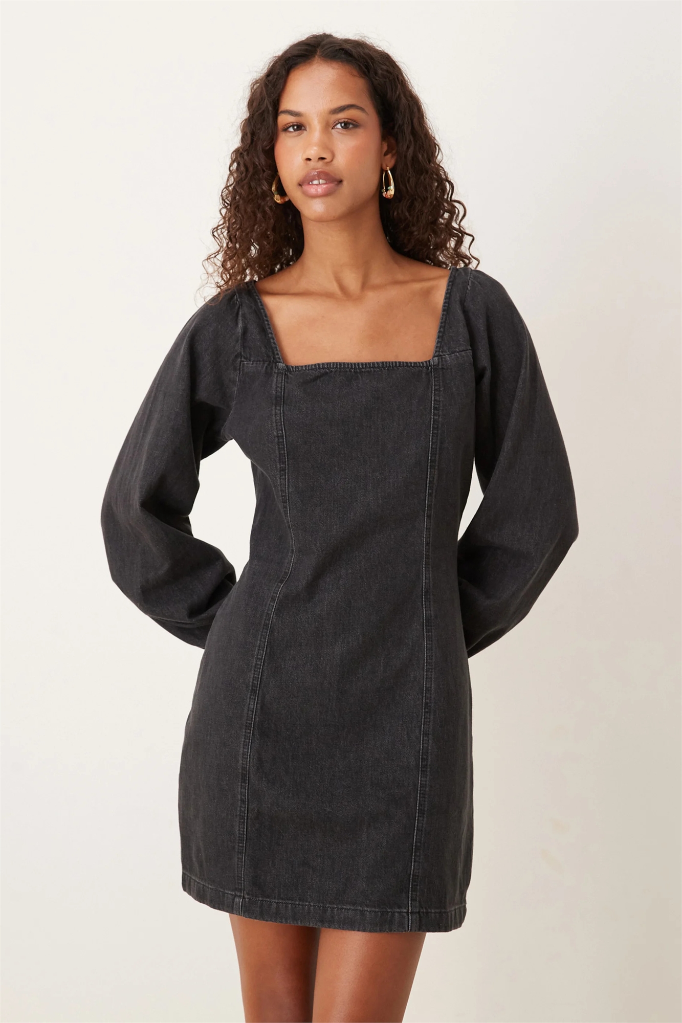 Мини-платье из денима с квадратным вырезом от Porth