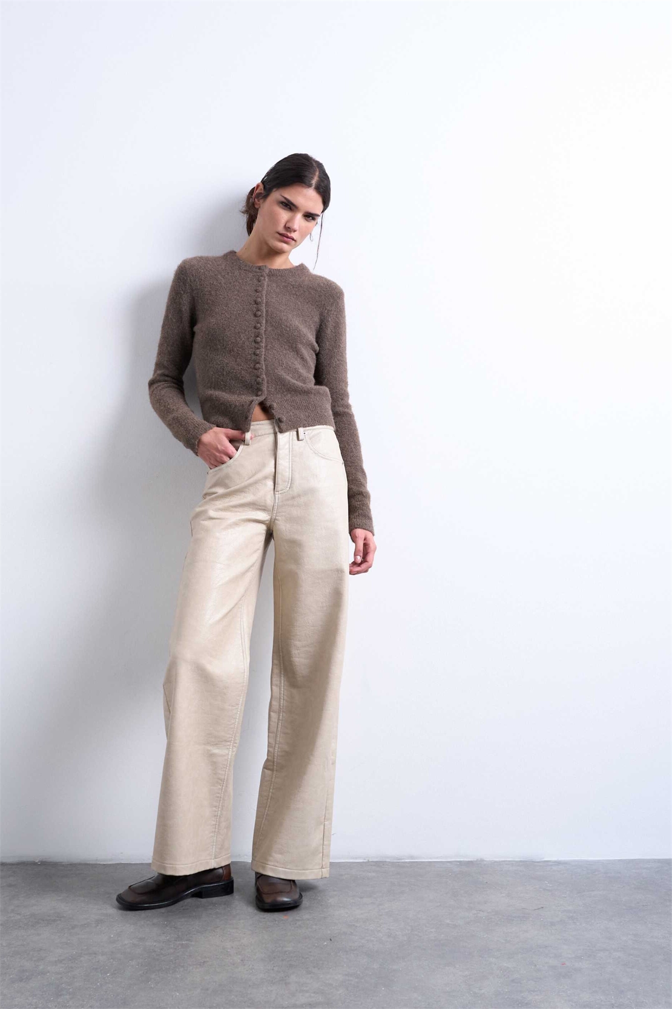 Брюки А-силуэта из искусственной кожи
