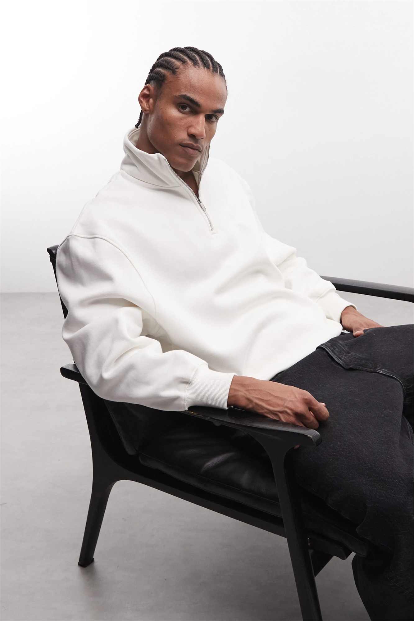 Свитшот премиум-класса с удлиненным кроем и четвертью молнии