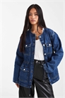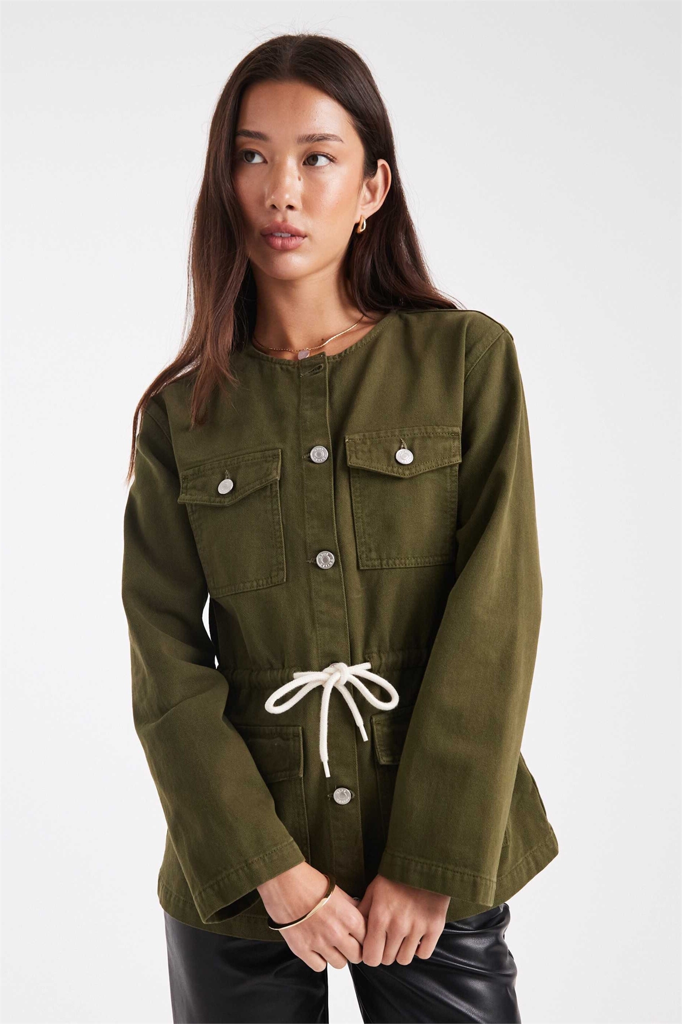 Джинсовая куртка с зауженной талией, функциональными карманами и шнурком на талии