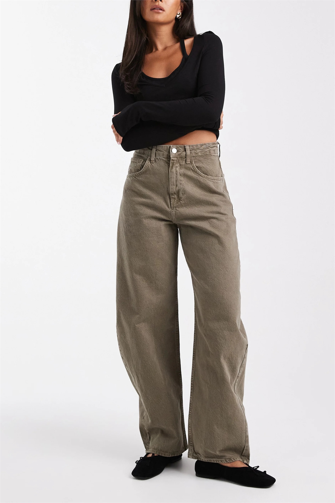 Джинсы с высокой талией и расклешенными брючинами