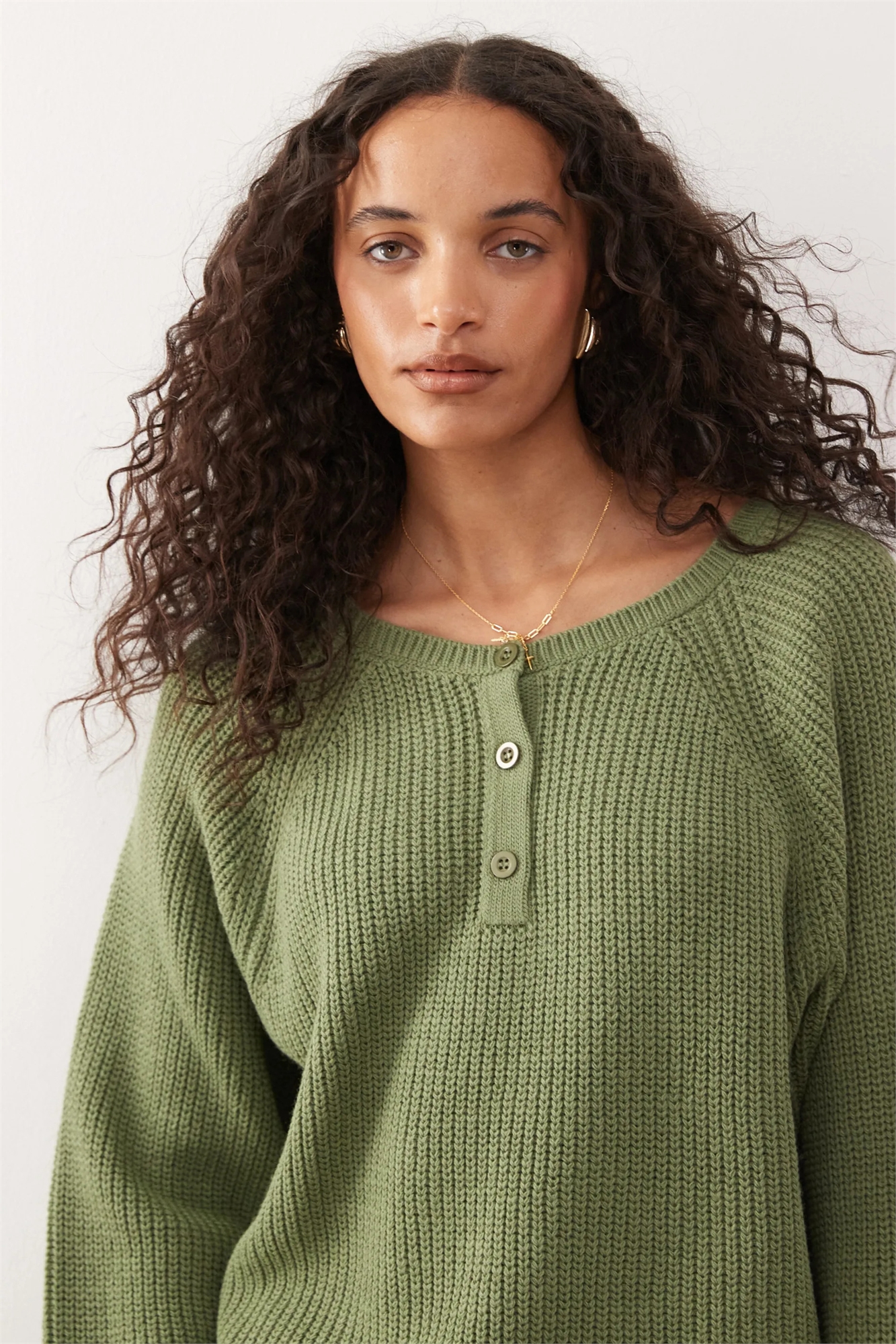 Вязаный свитер с раглановыми рукавами и пуговицами