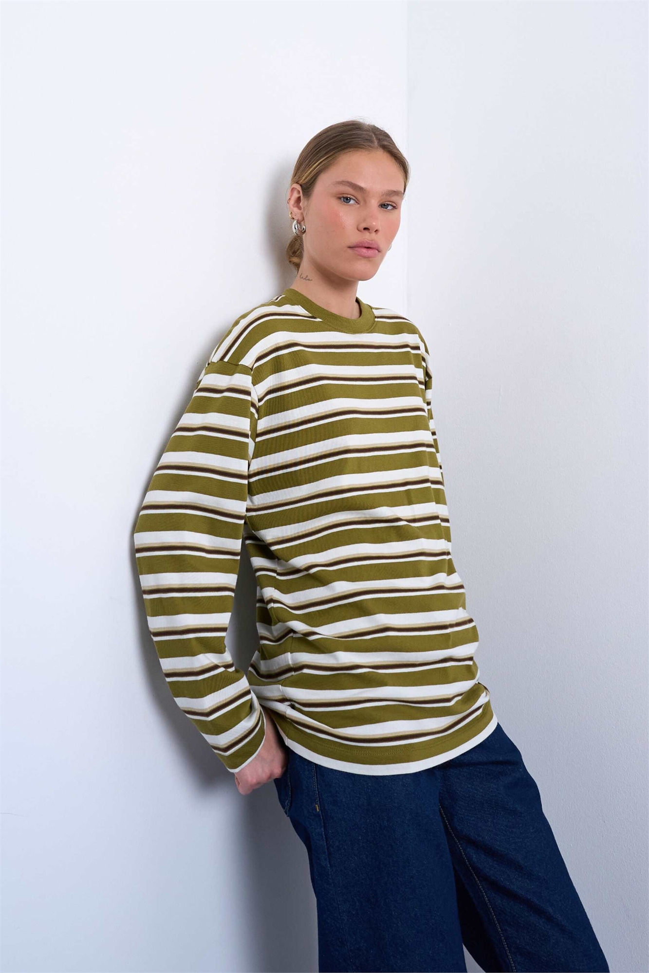 Футболка-скэтер свободного кроя с полосками и длинными рукавами