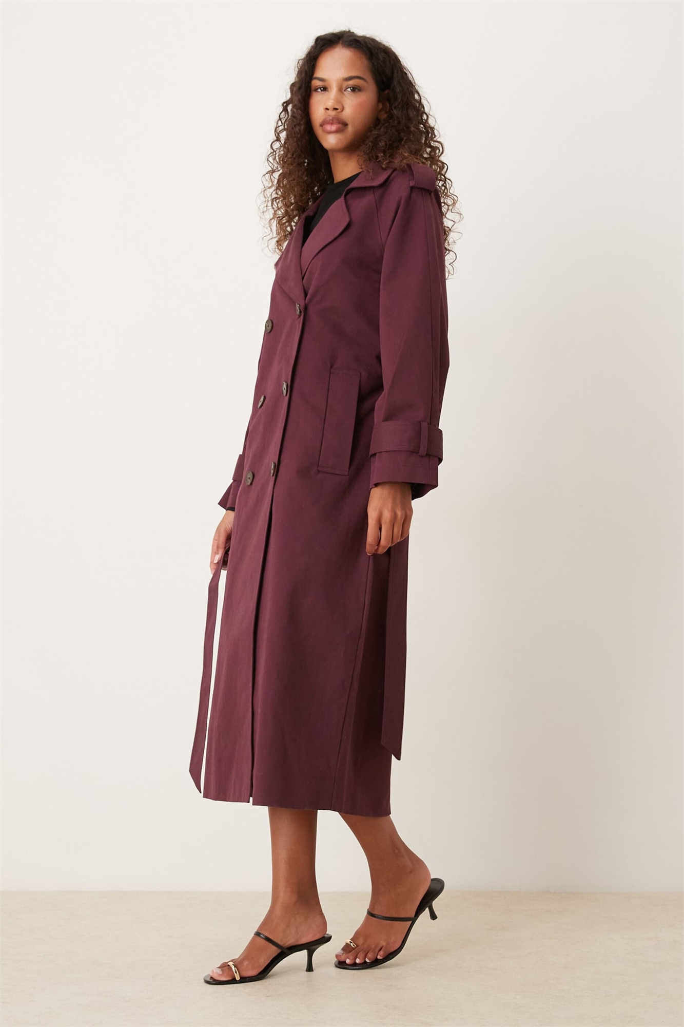 Длинный плащ бордового цвета