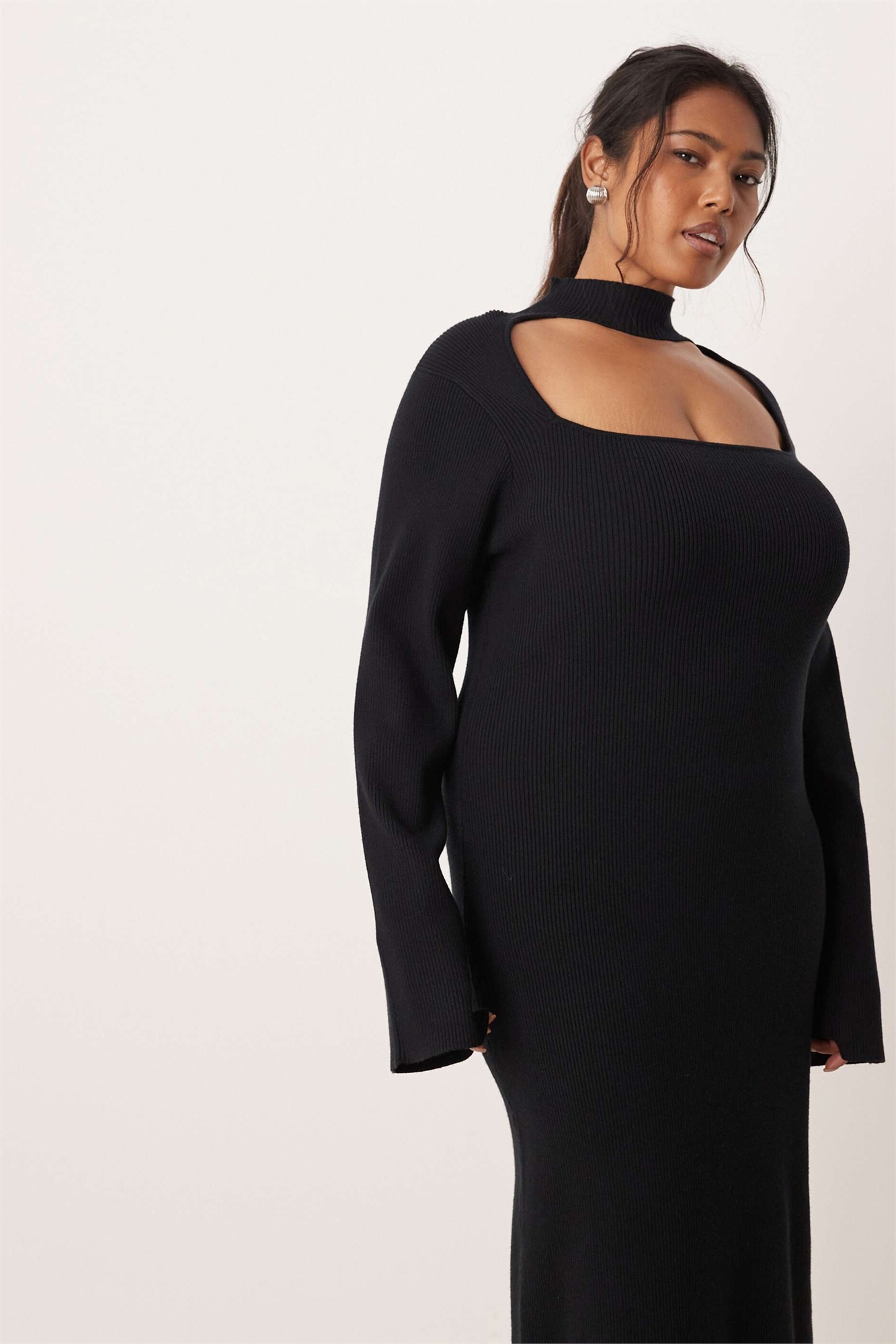 Макси-платье с трикотажным воротником-чокером и квадратным вырезом