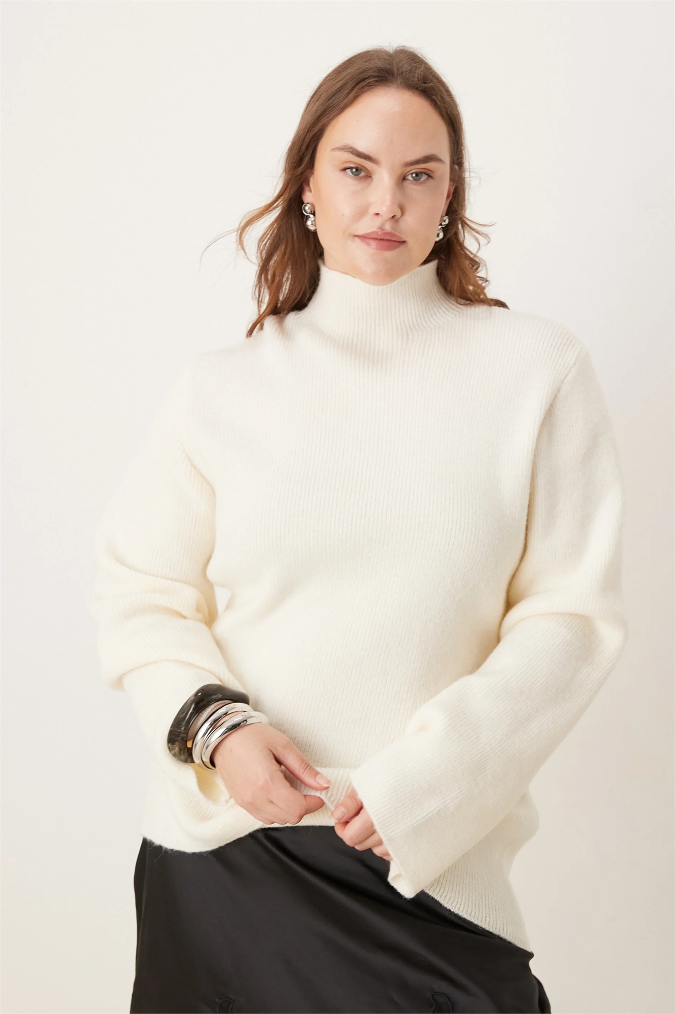 Свитер с высоким воротником из трикотажа