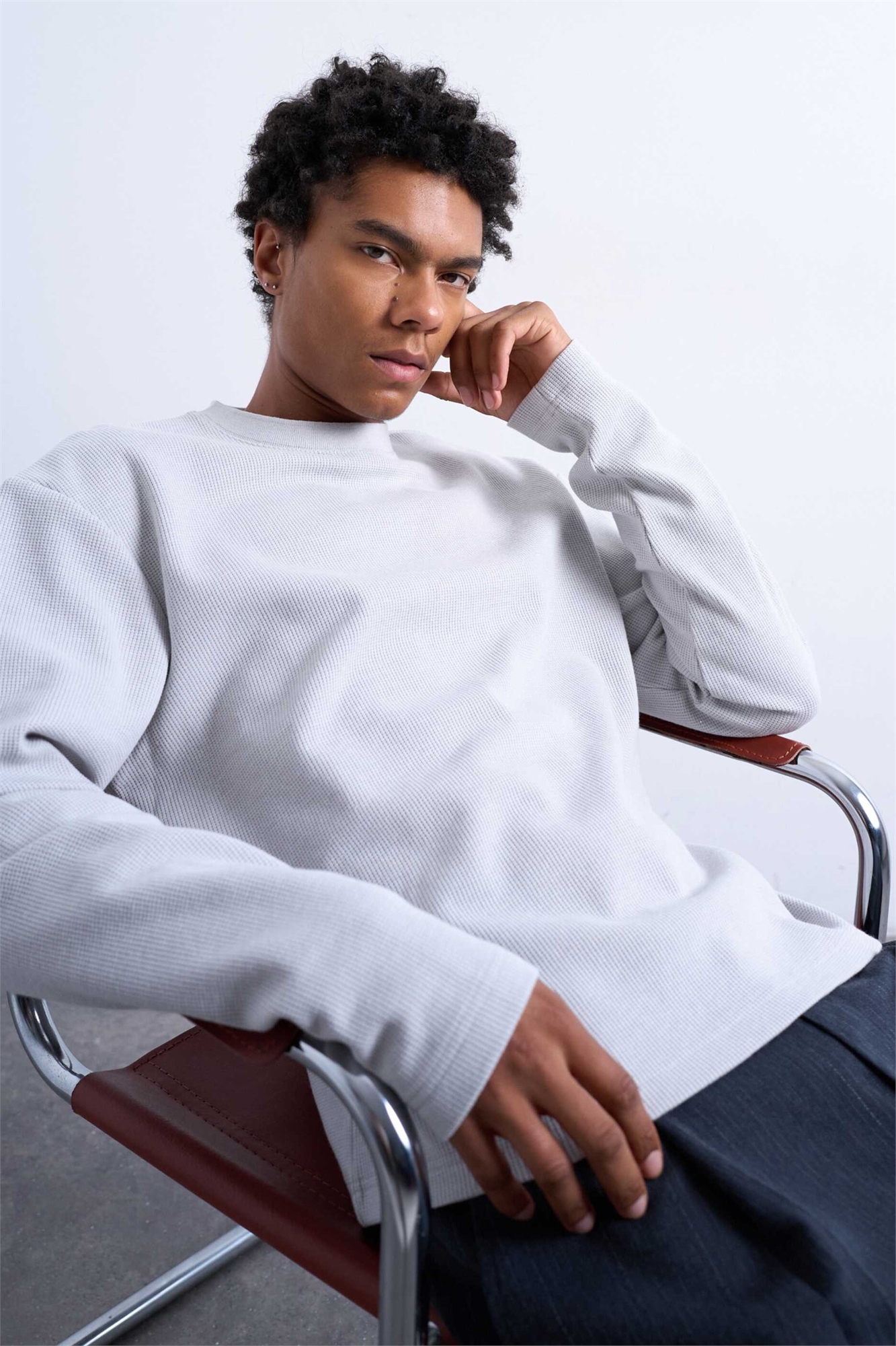 Футболка с длинным рукавом из плотной ткани с вафельной текстурой и укороченным кроем