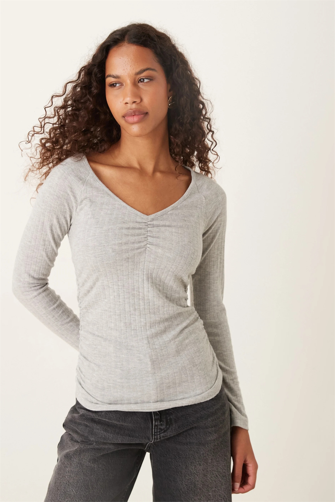 Сверхмягкая кофта с ребристым воротником-V и длинными рукавами