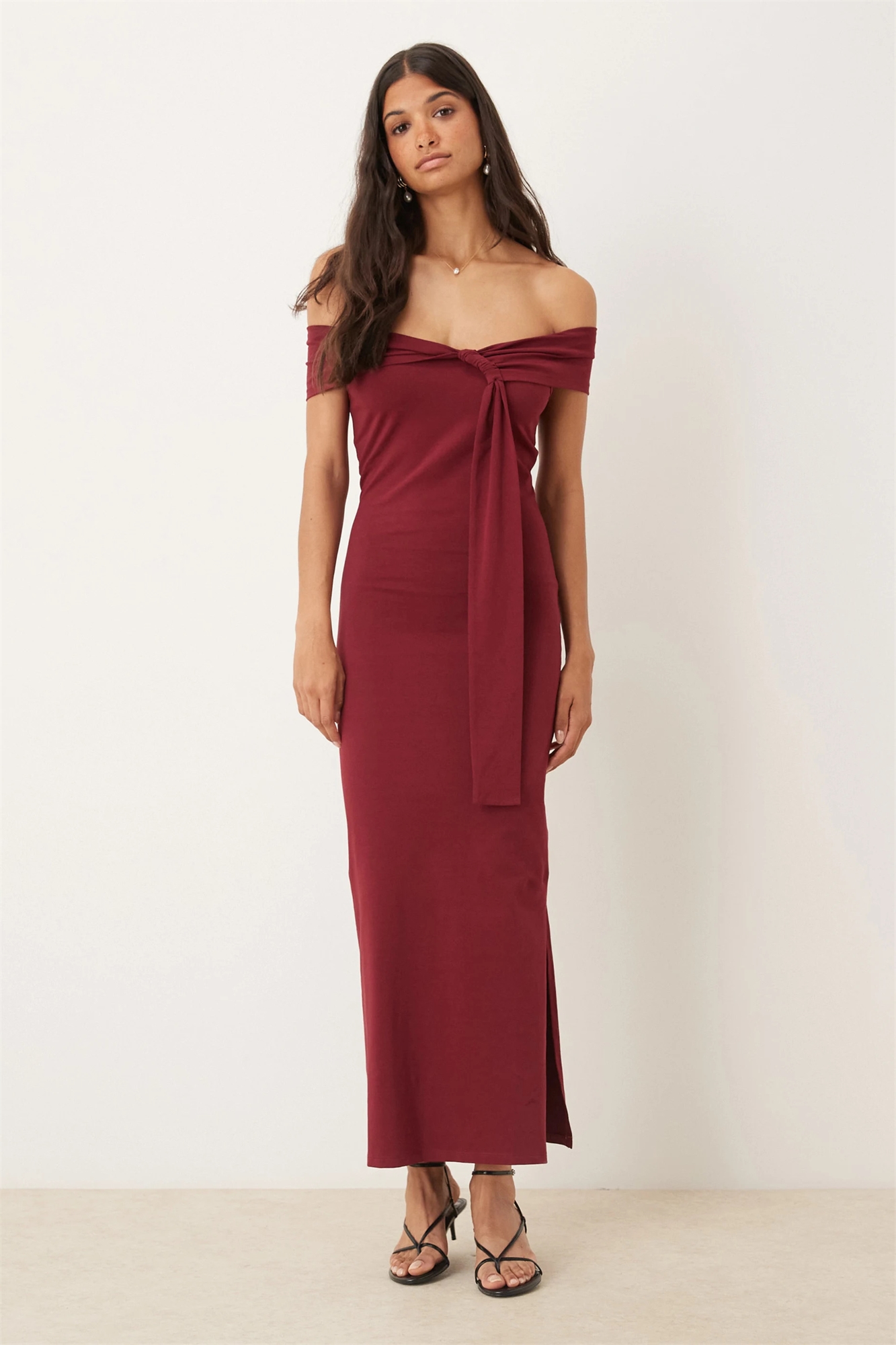 Платье средней длины с закрученным декольте в стиле Бардо
