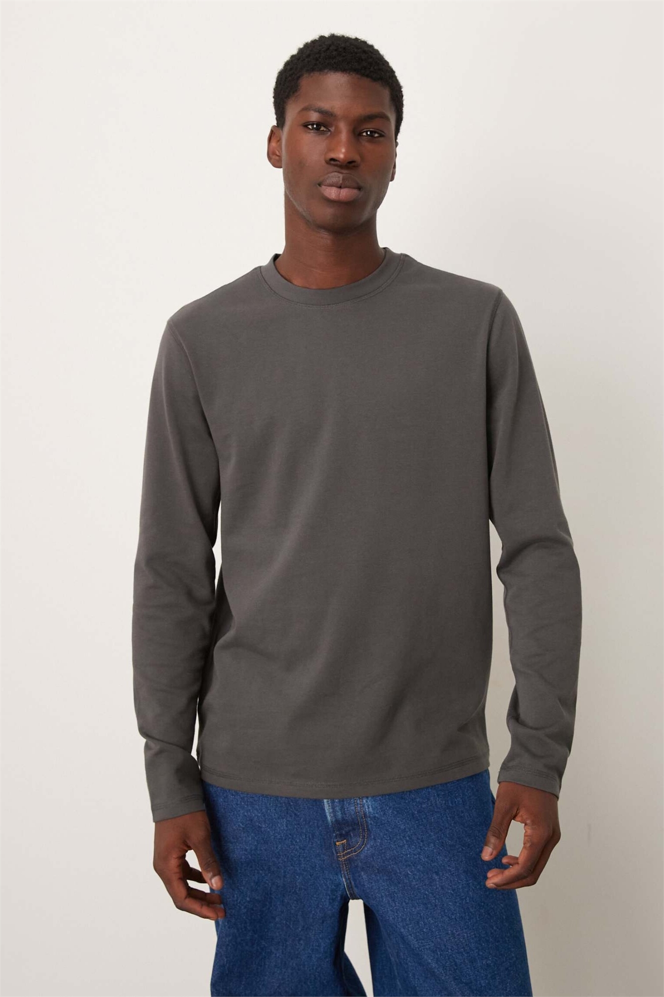 Футболка с круглым вырезом и длинными рукавами из плотной ткани