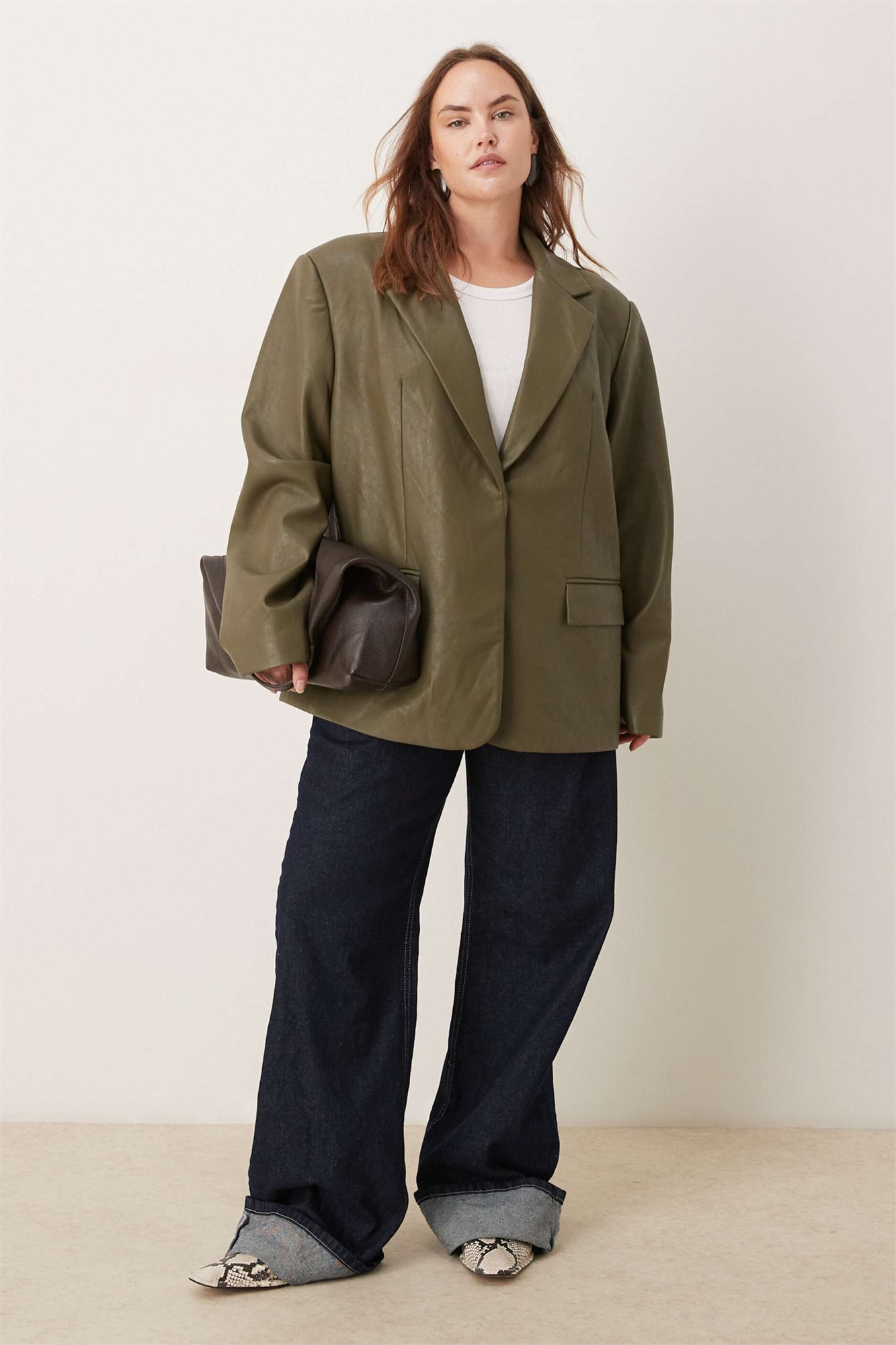 Блейзер свободного кроя из искусственной кожи с закругленными линиями