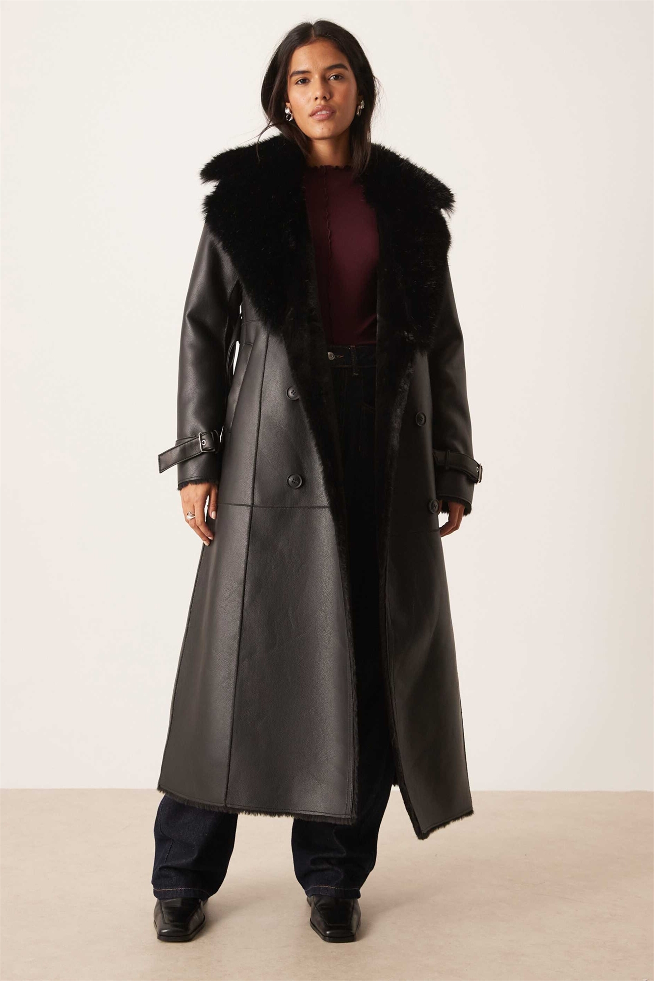 Пальто из искусственной кожи с поясом
