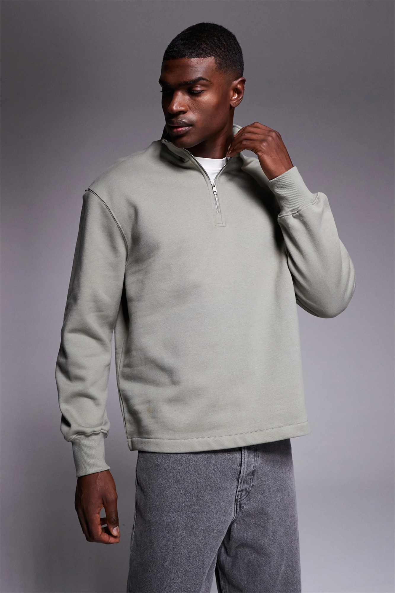 Свитшот свободного кроя с четвертью молнии и фиксированным низом