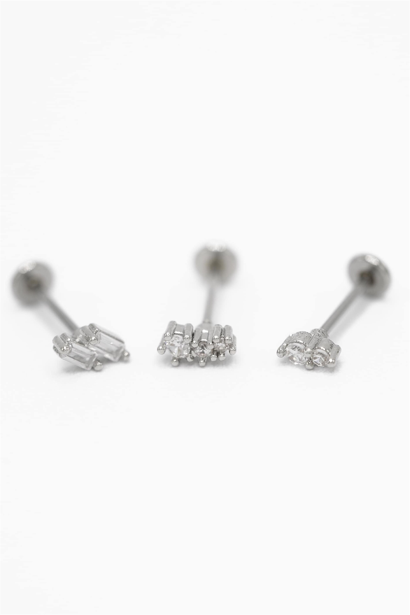 Сережки-гвоздики из хирургической стали с кубическим цирконием в форме двойной багеты и плоской застежкой, набор из 3 штук