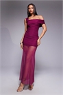 Эксклюзивное двухслойное облегающее асимметричное макси-платье с одним плечом и прозрачным подолом