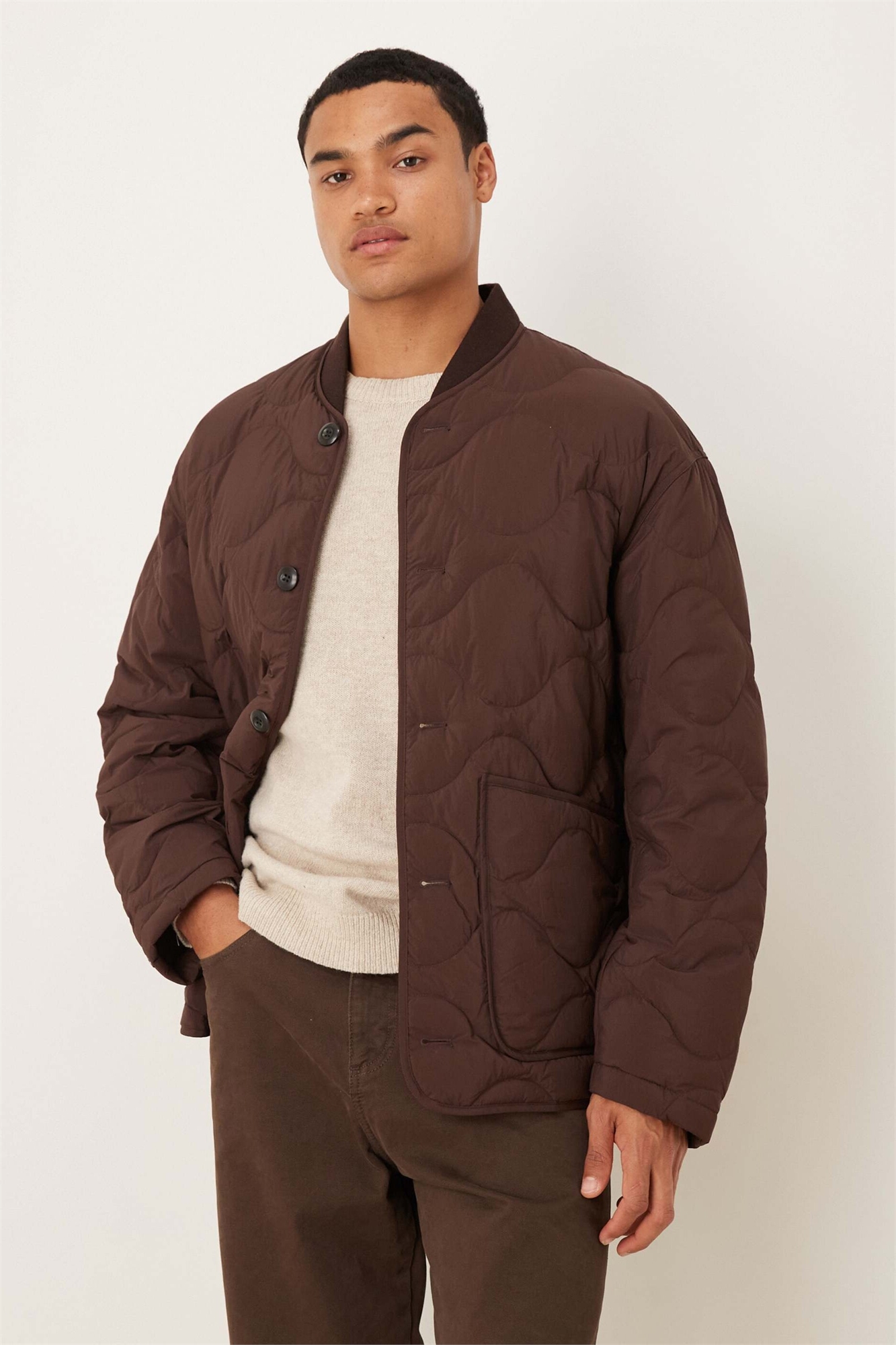 Стеганая куртка с воротником из ребристой ткани