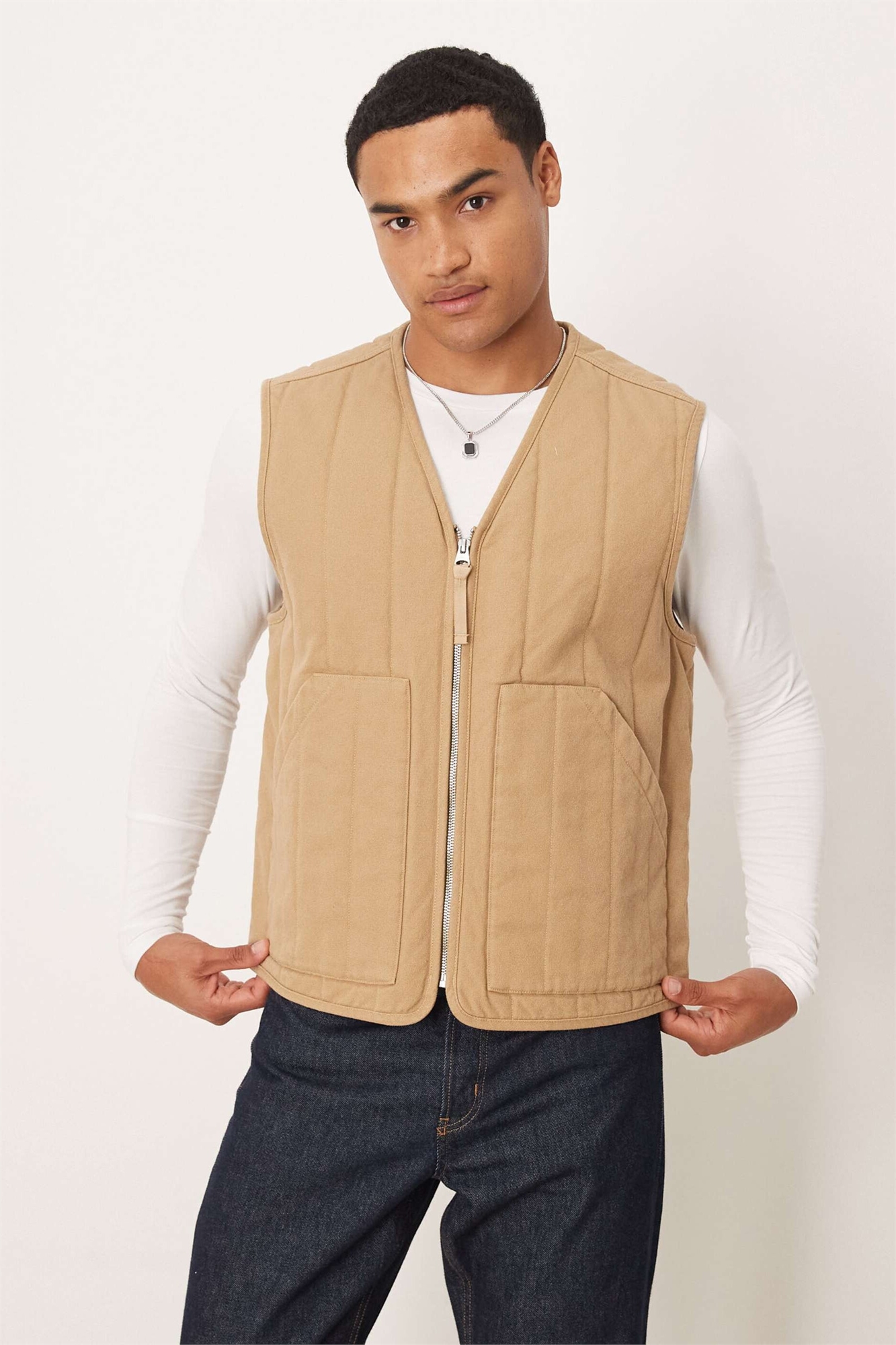 Стеганый жилет с V-образным вырезом