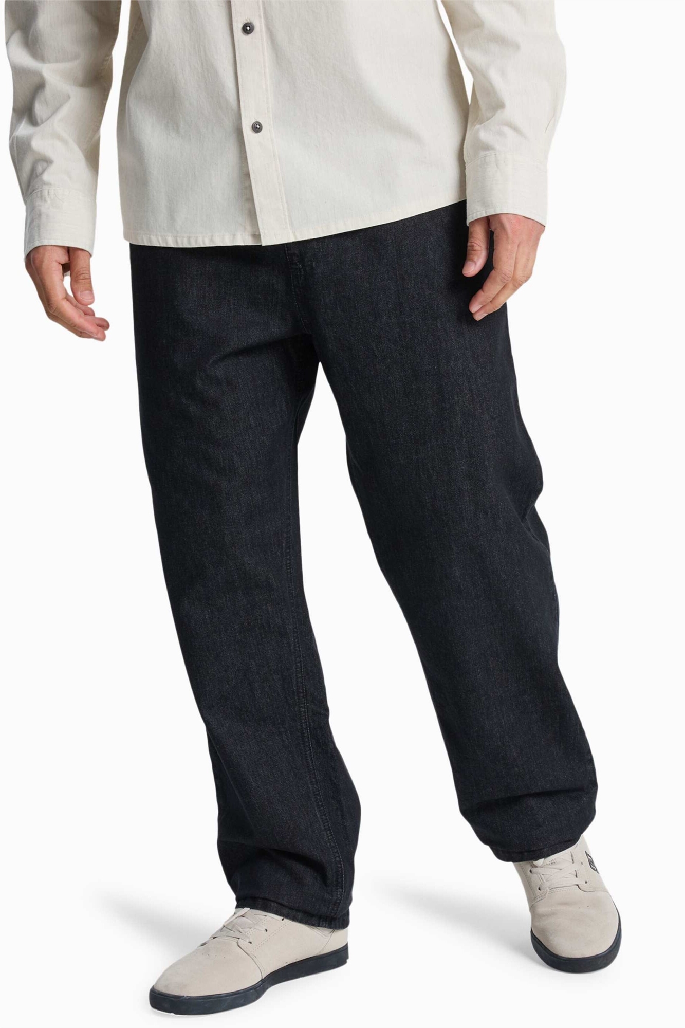 Неэластичный деним: черная стирка Основной материал: 100% хлопок.