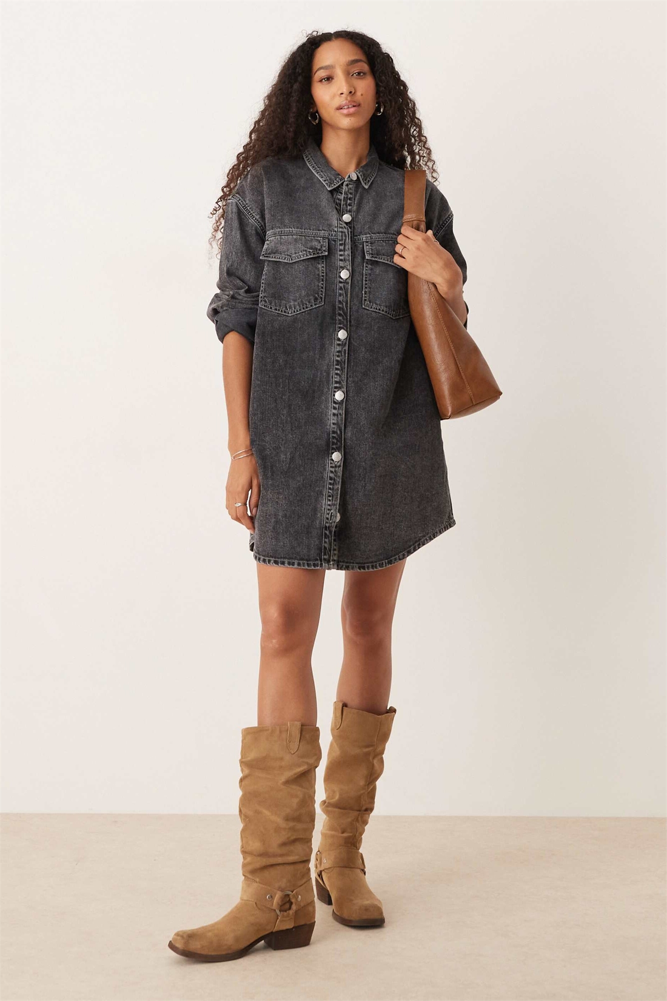 Джинсовое мини-платье-рубашка с длинными рукавами от Tidal Moon