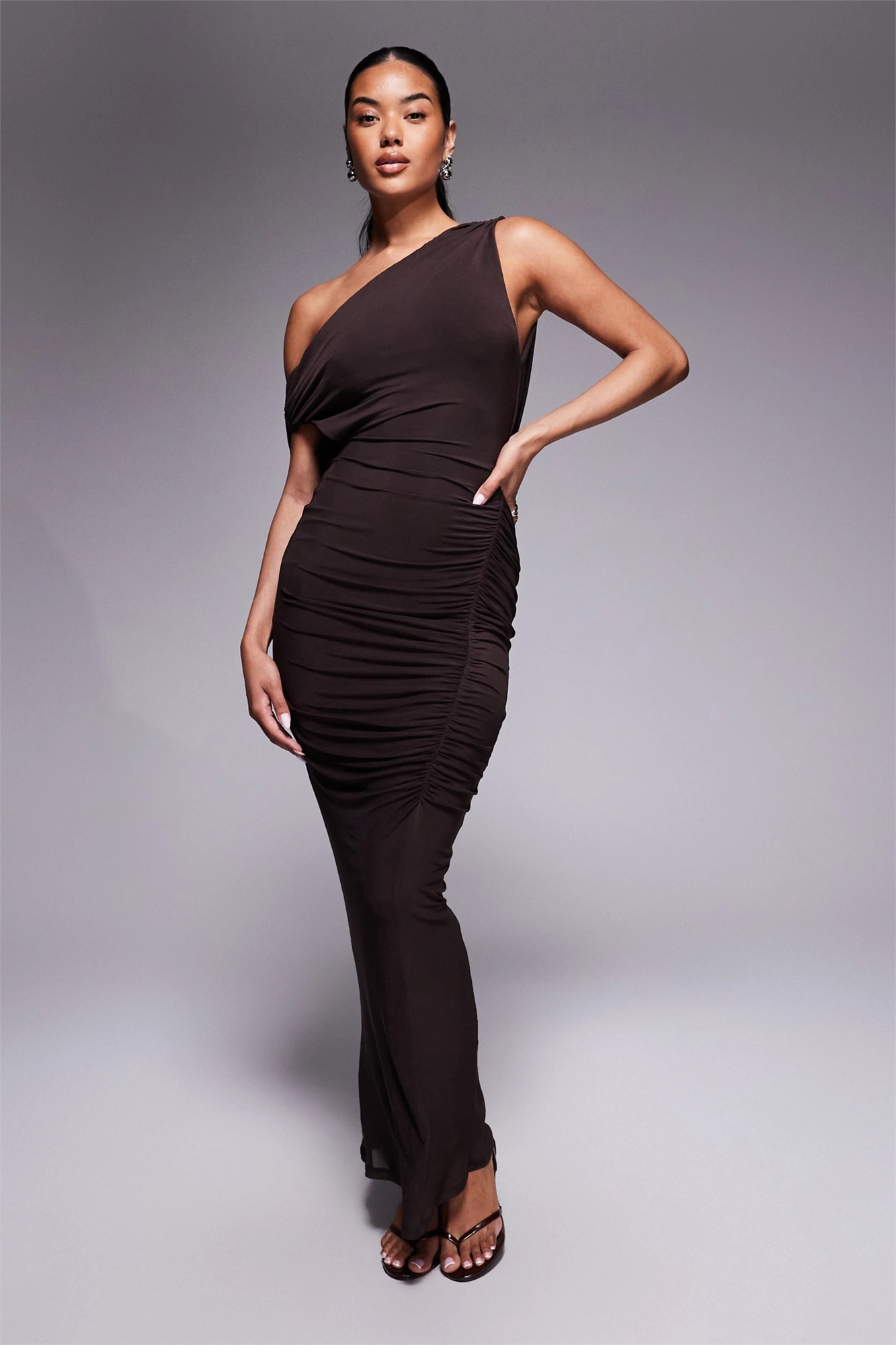 Макси-платье с драпировкой на спине и сборками