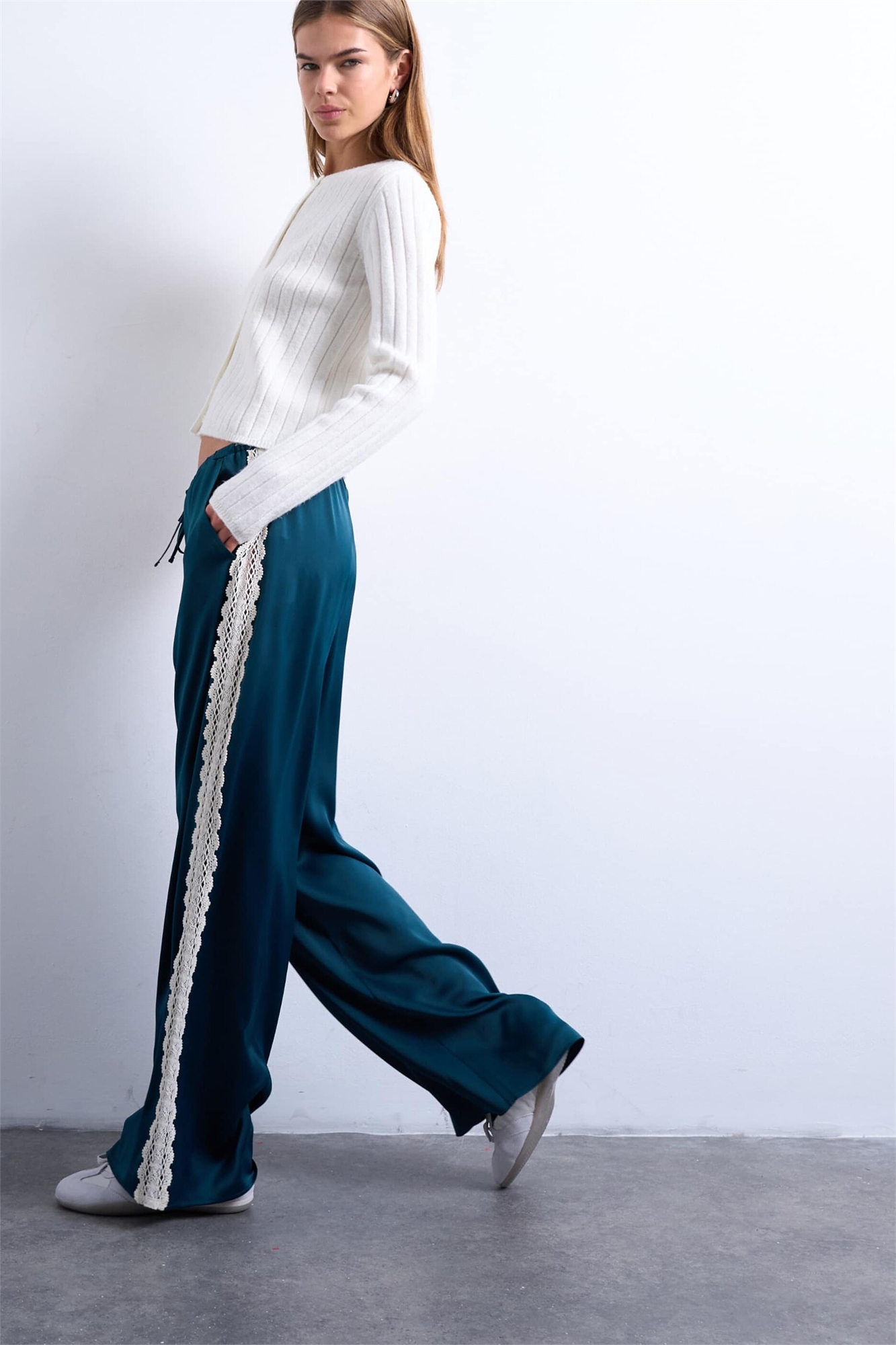 Брюки с атласными кружевными вставками
