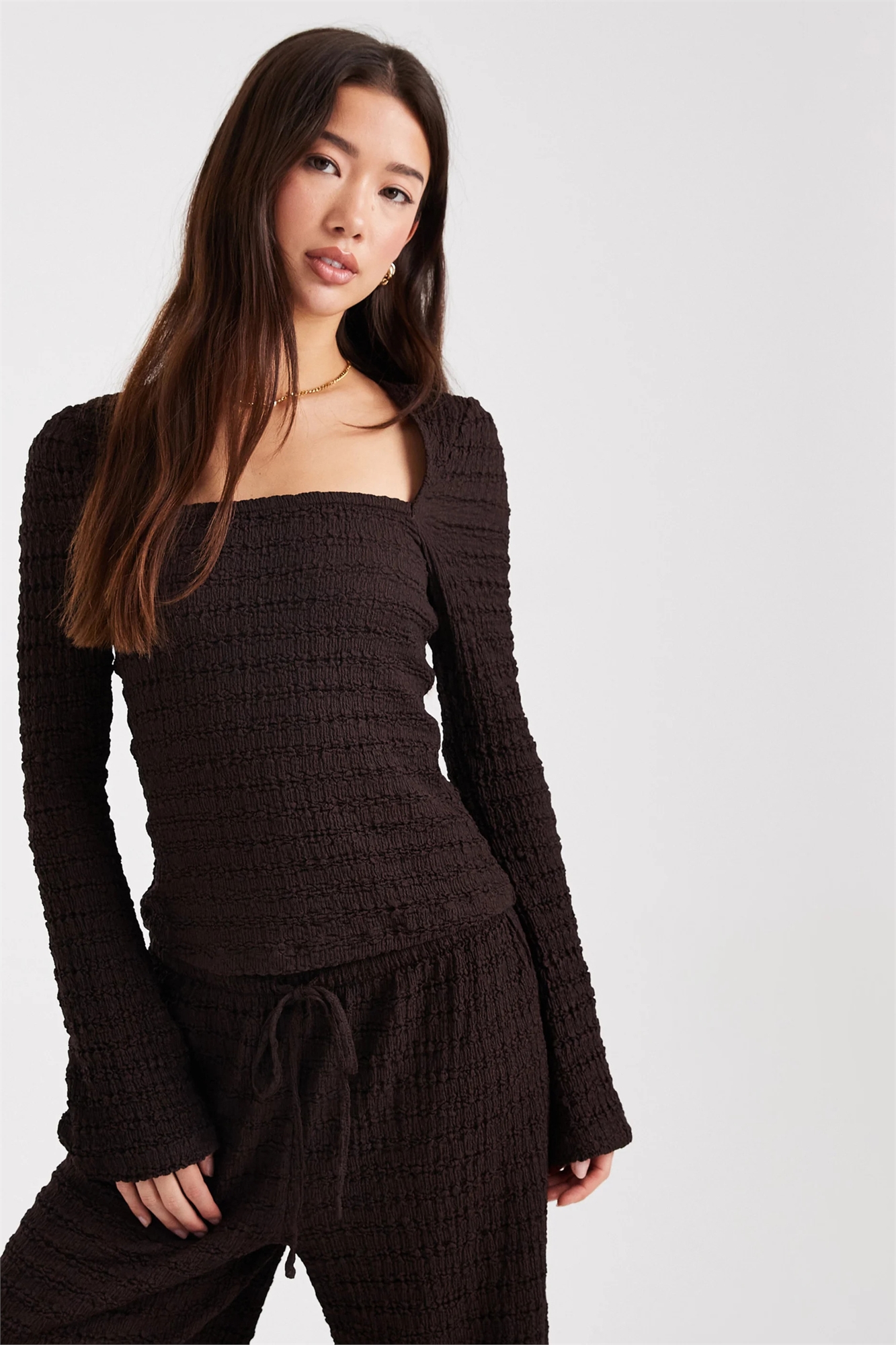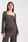 Топ с квадратным вырезом и расклешенными рукавами из ткани с фактурной текстурой