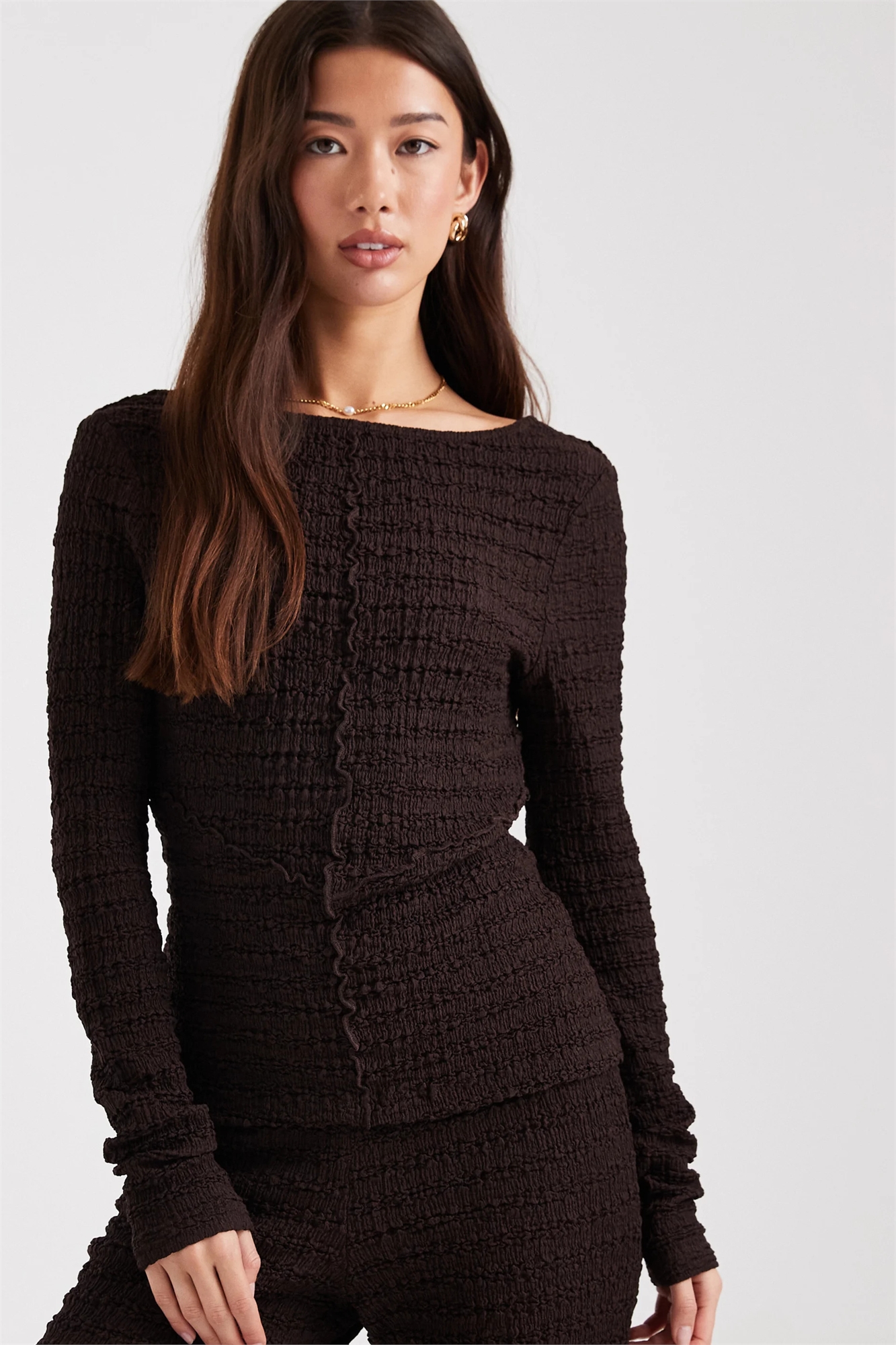 Комбинируемый топ с длинными рукавами и фактурной текстурой, с декоративными швами и вырезом на спине