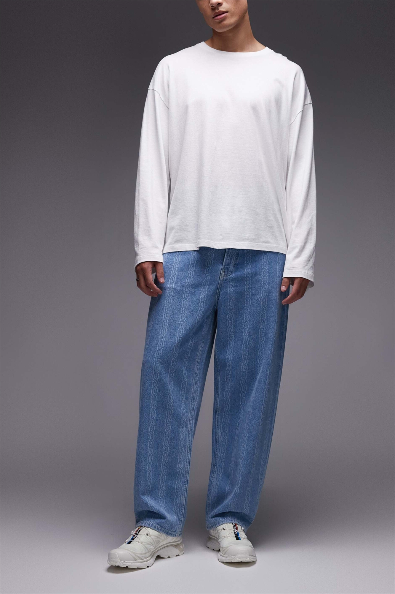 Джинсы свободного кроя с принтом в виде цепной сетки