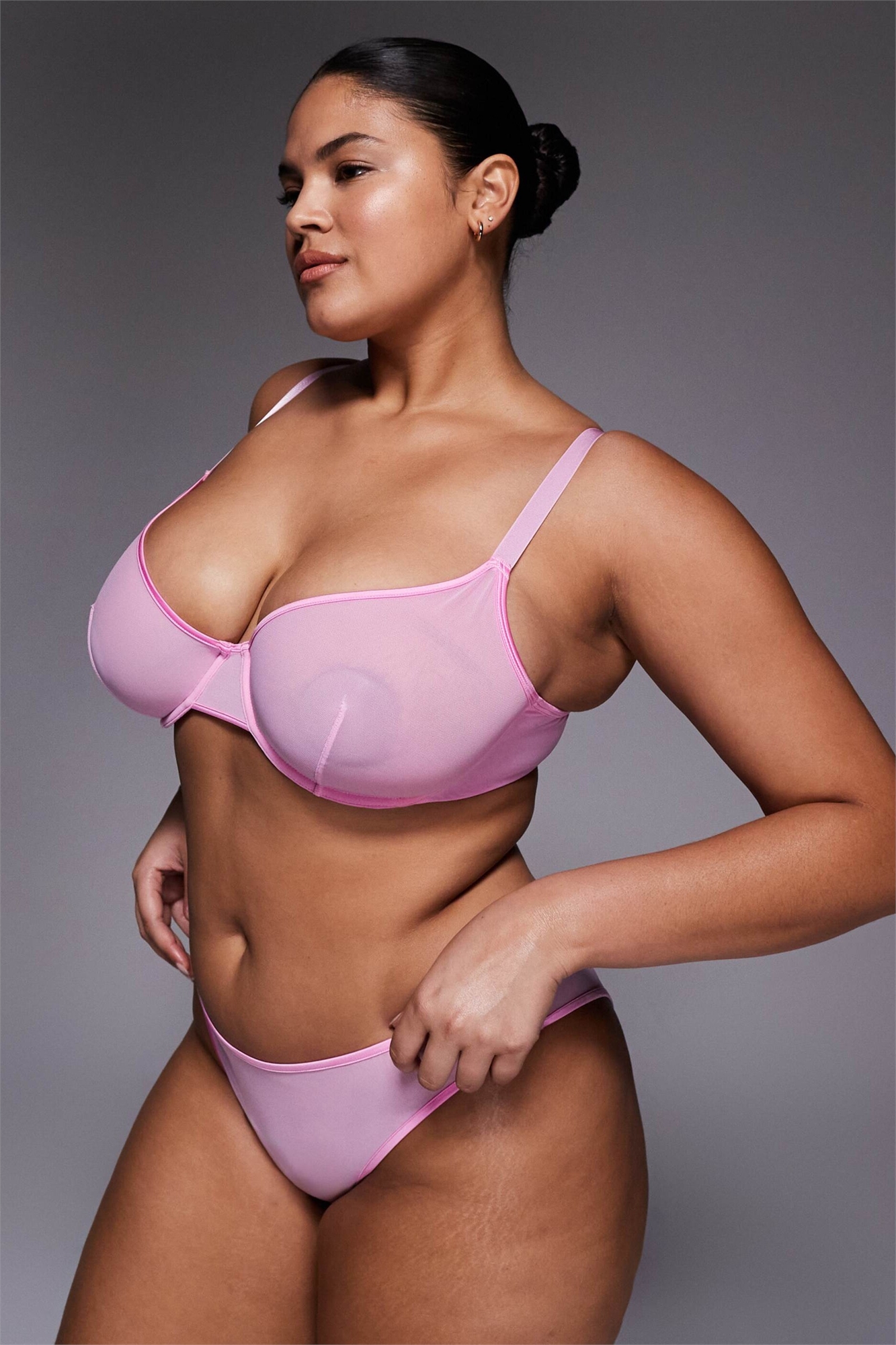 ASOS DESIGN Curve — бразильские трусики с высокой вырезом и сетчатой вставкой, отделанные атласом