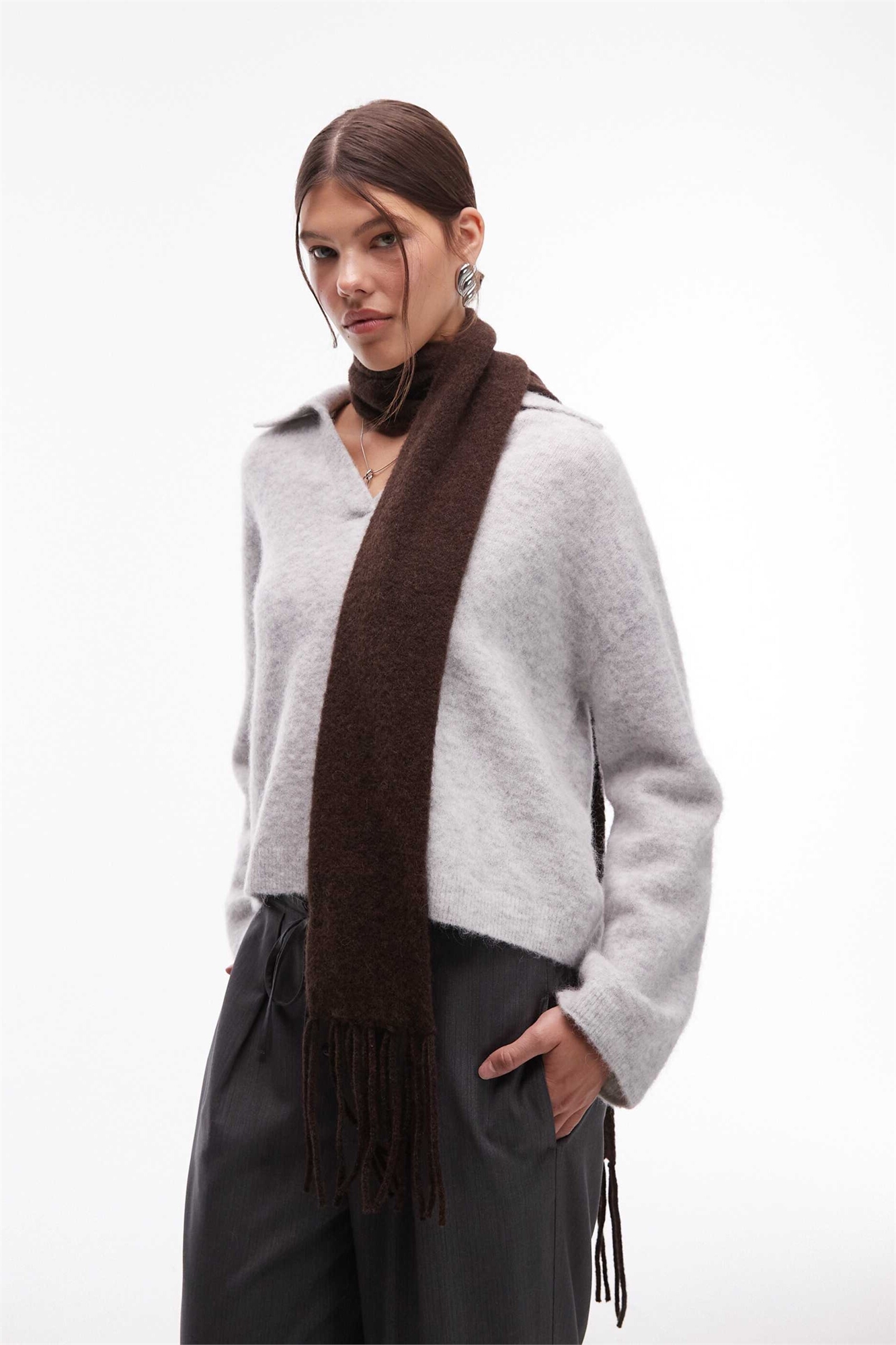 Шарф из высококачественной шерсти с бахромой