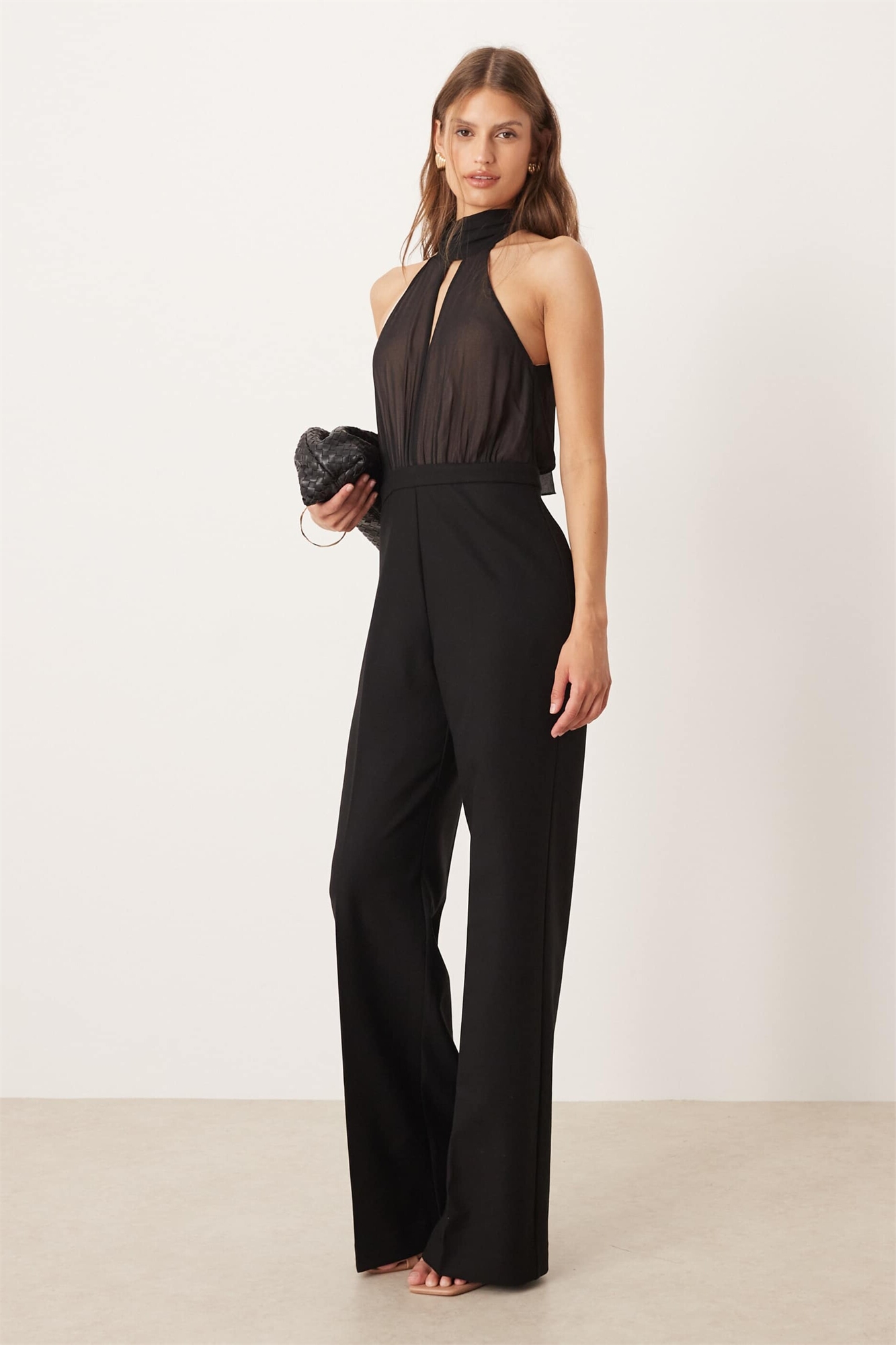 Комбинезон с высоким воротником и прозрачными вставками